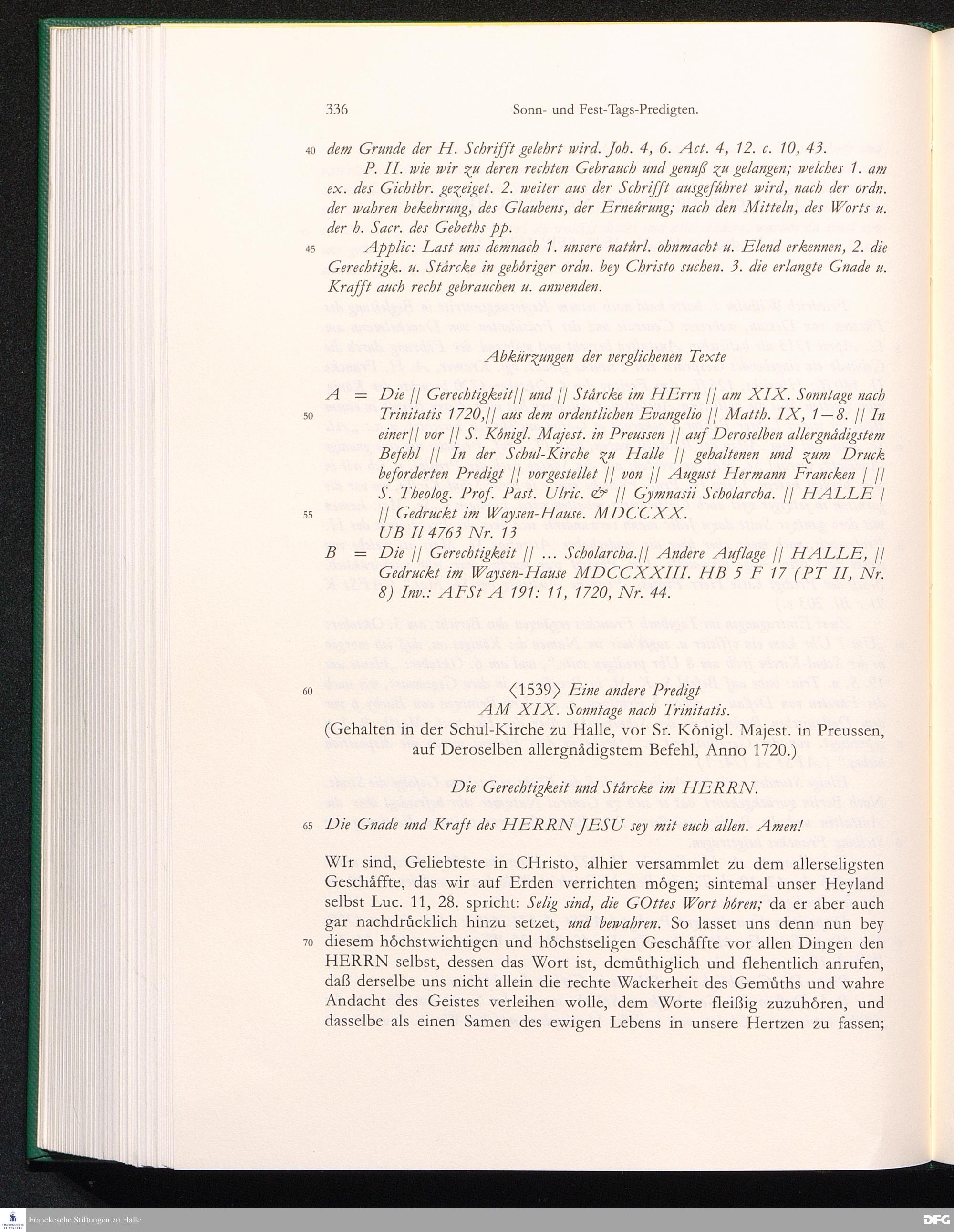 Erster Teil: Auswahl aus den Predigtsammlungen 1706 bis 1726