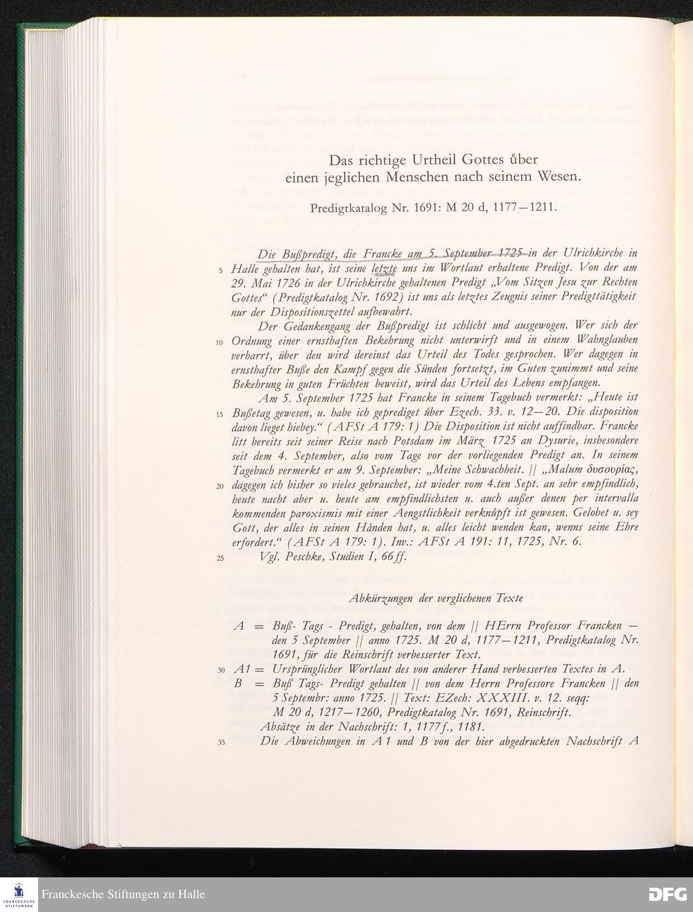 Zweiter Teil: Auswahl aus den Predigtnachschriften (AFSt) 1693 bis 1725