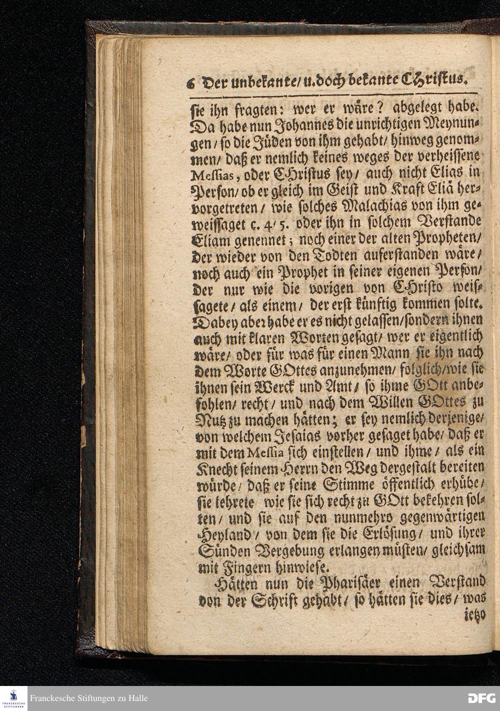 Der unbekante / und doch bekante Christus / Aus dem Evangelischen Text Joh.I, 19-28. Am IV.Sonntag des Advents 1715. In der St.Ulrichs=Kirchen in Halle / vorgestellet von A[ugust] H[ermann] F[rancke]. [Kopftitel]