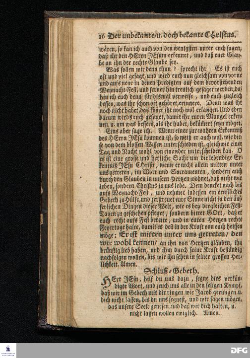 Der unbekante / und doch bekante Christus / Aus dem Evangelischen Text Joh.I, 19-28. Am IV.Sonntag des Advents 1715. In der St.Ulrichs=Kirchen in Halle / vorgestellet von A[ugust] H[ermann] F[rancke]. [Kopftitel]