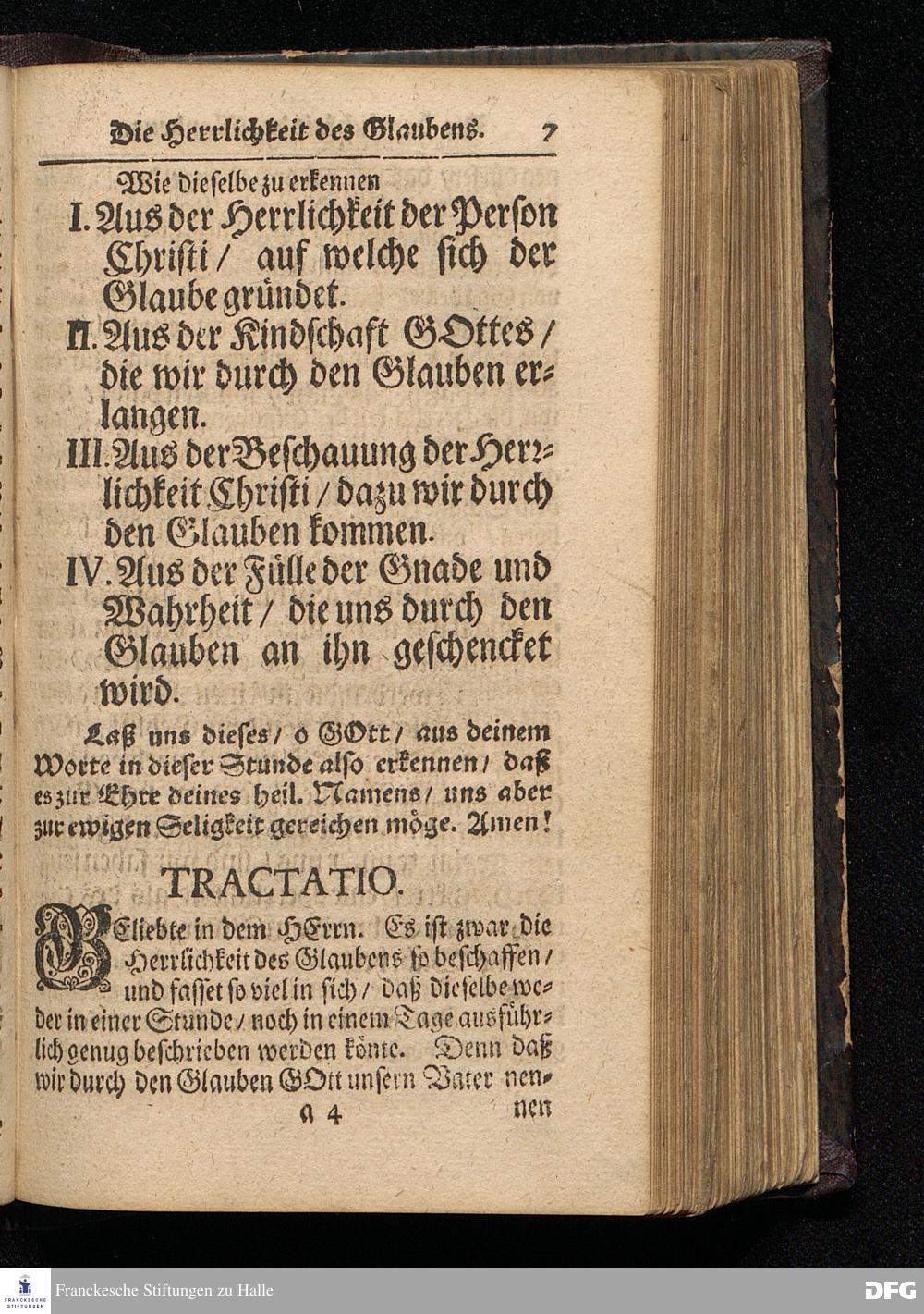 Die Herrlichkeit des Glaubens / Am 3ten Weyhnacht=Feyertage MDCCXV. In der Predigt aus dem Evangelio Ioh. I,1--14. In der Schul=Kirche zu Halle vorgestellet von August Hermann Francken / S.Theolog.Prof.& Past.zu S.Ulrich / und des Gymnasii Scholarcha. HALLE / Gedruckt und zu finden im Wäysen=Hause. Anno 1716.