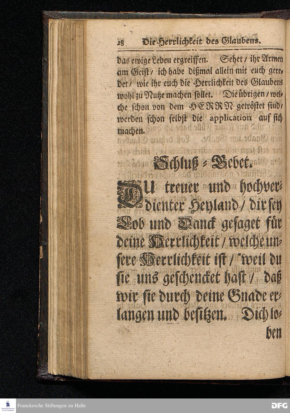 Die Herrlichkeit des Glaubens / Am 3ten Weyhnacht=Feyertage MDCCXV. In der Predigt aus dem Evangelio Ioh. I,1--14. In der Schul=Kirche zu Halle vorgestellet von August Hermann Francken / S.Theolog.Prof.& Past.zu S.Ulrich / und des Gymnasii Scholarcha. HALLE / Gedruckt und zu finden im Wäysen=Hause. Anno 1716.