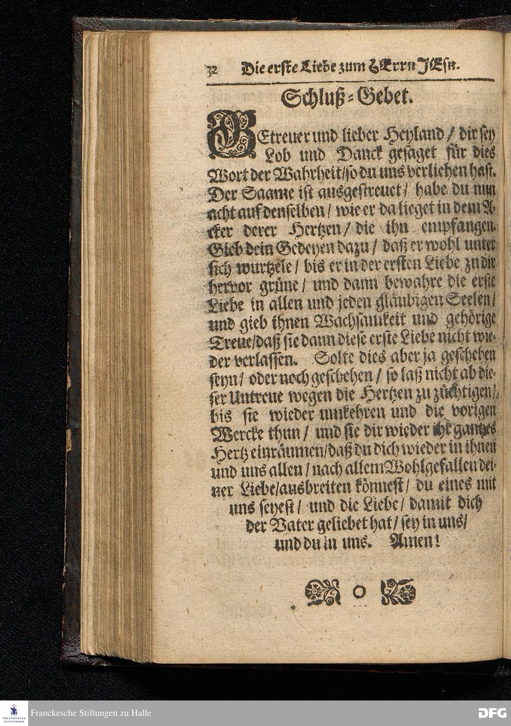 Die Erste Liebe Zum HErrn JEsu / Aus dem Evangelischen Text Luc.II, 33--40. Am Sonntag nach dem Christ=Tage In der S.Ulrichs=Kirche in Halle / vorgestellet von August Hermann Francken / S.Theolog.Prof.& Past. zu S.Ulrich / und des Gymnasii Scholarcha. HALLE / Gedruckt und zu finden im Wäysen=Hause. MDCCXVI.