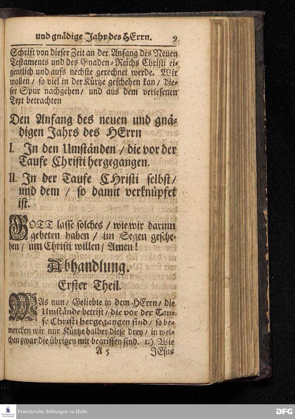 Das Neue und Gnädige Jahr des HErrn / Am Sonntag nach dem Neuen Jahr MDCCXVI. Aus dem Evangelio Matth.III, 13--17. In der St.Georgen=Kirche zu Glaucha an Halle vorgestellet von August Herman[n] Francken / S.Theolog.Prof.& Past.zu S.Ulrich / und des Gymansii Scholarcha. HALLE / Gedruckt und zu finden im Wäysen=Hause.