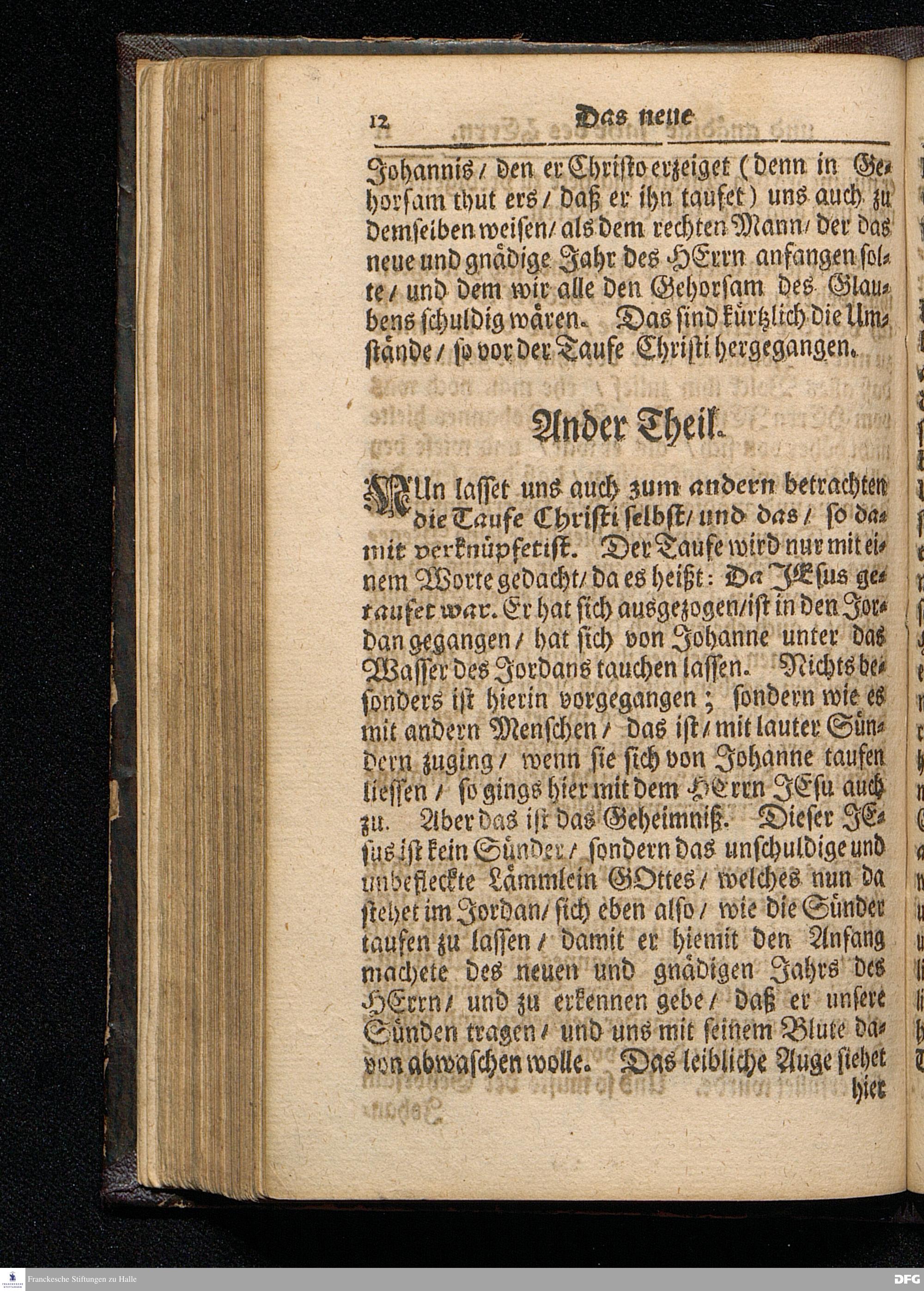 Das Neue und Gnädige Jahr des HErrn / Am Sonntag nach dem Neuen Jahr MDCCXVI. Aus dem Evangelio Matth.III, 13--17. In der St.Georgen=Kirche zu Glaucha an Halle vorgestellet von August Herman[n] Francken / S.Theolog.Prof.& Past.zu S.Ulrich / und des Gymansii Scholarcha. HALLE / Gedruckt und zu finden im Wäysen=Hause.