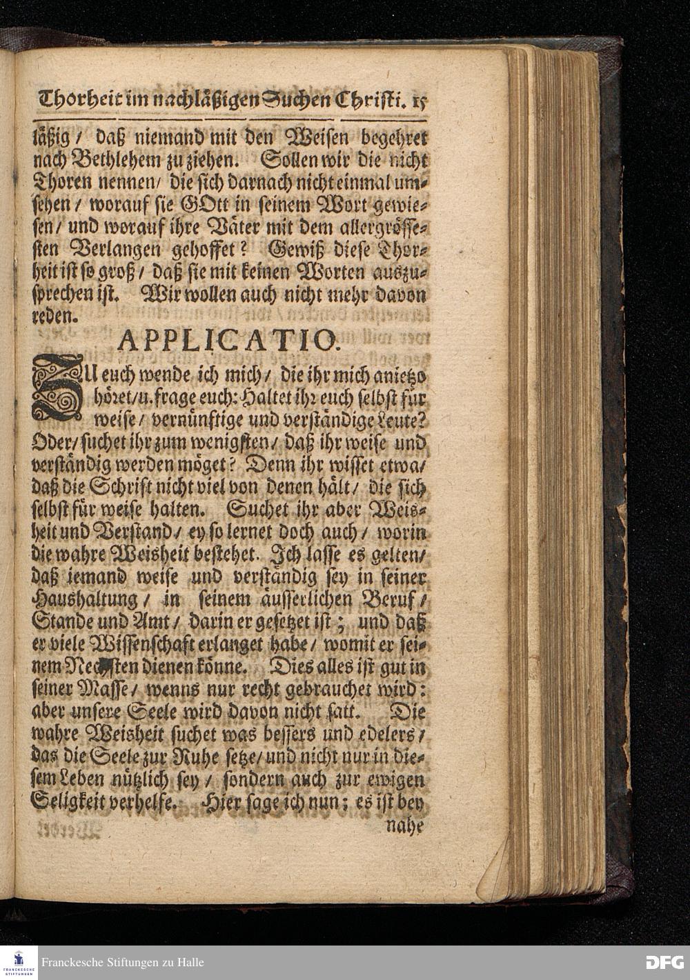 Die Weisheit und Thorheit / Jene in dem ernstlichen / diese in dem nachläßigen Suchen Christi / Aus dem Fest=Evangelio Matth.II, 1--12. Am H.3.König=Tage In der St.Ulrichs=Kirche zu Halle vorgestellet von August Herman[n] Francken / S.Theolog.Prof.& Past.zu S.Ulrich / und des Gymnasii Scholarcha. HALLE / Gedruckt und zu finden im Wäysen=Hause. Anno 1716.