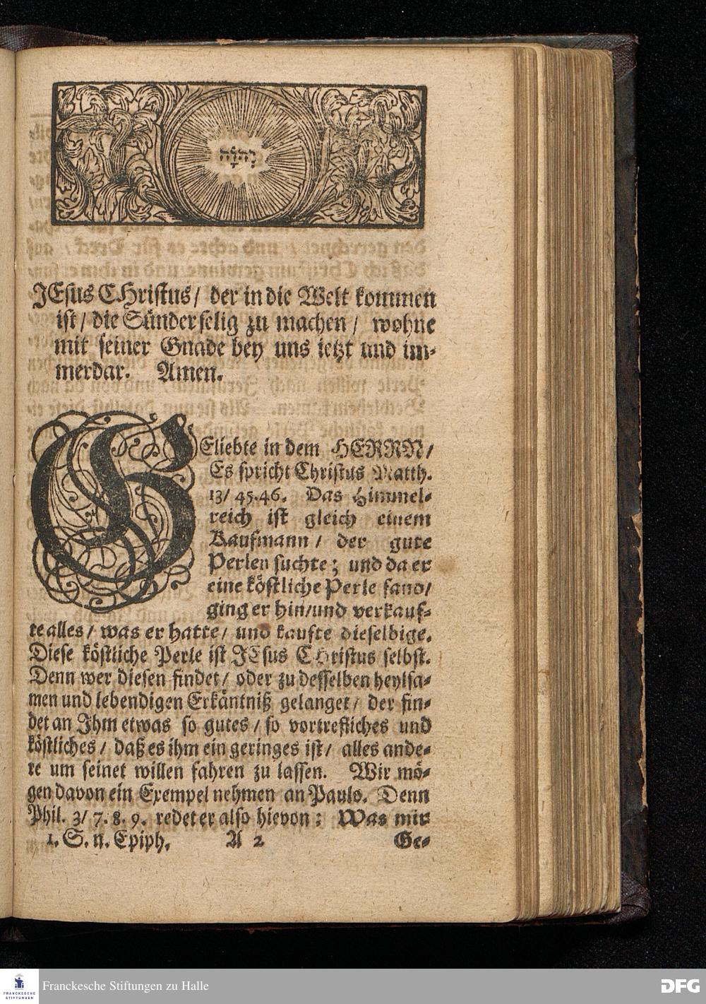 Das Suchen und Finden Christi / Am 1sten Sonntag nach Epiphanias MDCCXII. Aus dem Evangelio Luc.II, 41-52. In der Schul=Kirchen zu Halle / vorgestellet von August Herman[n] Francken / S.Theolog.Prof.& Past.zu S.Ulrich / und des Gymnasii Scholarcha. HALLE / Gedruckt und zu finden im Wäysen=Hause. Anno 1716.