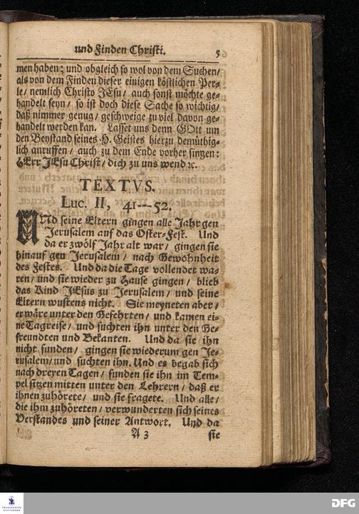 Das Suchen und Finden Christi / Am 1sten Sonntag nach Epiphanias MDCCXII. Aus dem Evangelio Luc.II, 41-52. In der Schul=Kirchen zu Halle / vorgestellet von August Herman[n] Francken / S.Theolog.Prof.& Past.zu S.Ulrich / und des Gymnasii Scholarcha. HALLE / Gedruckt und zu finden im Wäysen=Hause. Anno 1716.