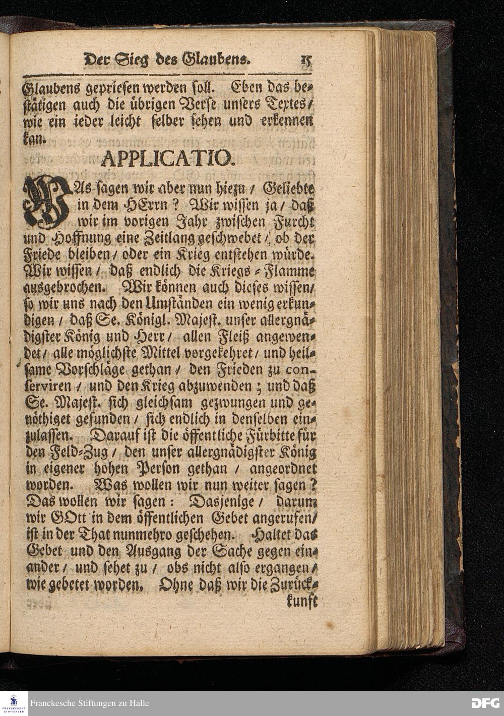 Der Sieg des Glaubens / Am Isten Sonntag nach Epiphanias MDCCXVI. An welchem / auf höchste Königliche Verordnung / das Danck=Fest wegen des in Pommern glücklich geendeten Feld=Zuges gefeyret worden / Aus Psalm.XX. v.6--10. In der St.Ulrichs=Kirche in Halle vorgestellet von August Hermann Francken / S.Theol.Prof.& Past.zu S.Ulrich / und des Gymnasii Scholarcha. HALLE / Gedruckt und zu finden im Wäysen=Hause / 1716.