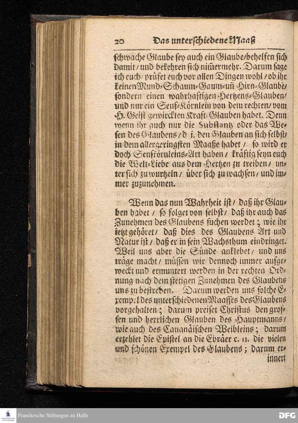 Das Unterschiedene Maaß des Glaubens / Aus dem Evangelischen Text Matth.VIII, 1--13. Am IIIten Sonntage nach Epiphanias MDCCXVI. In der St.Ulrichs=Kirchen in Halle vorgestellet von August Hermann Francken / S.Theol.Prof.& Past.zu S.Ulrich / und des Gymnasii Scholarcha. HALLE / Gedruckt und zu finden im Wäysen=Hause / 1716.