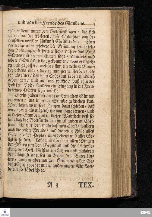 Der Trost und die Freude des Glaubens / Am Tage Mariä Reinigung MDCCXVI. Aus dem Evangelio Luc.II, 22--32. In der St.Ulrichs=Kirchen in Halle vorgestellet von August Hermann Francken / S.Theol.Prof.& Past.zu S.Ulrich / und des Gymnasii Scholarcha. HALLE / Gedruckt und zu finden im Wäysen=Hause / 1716.