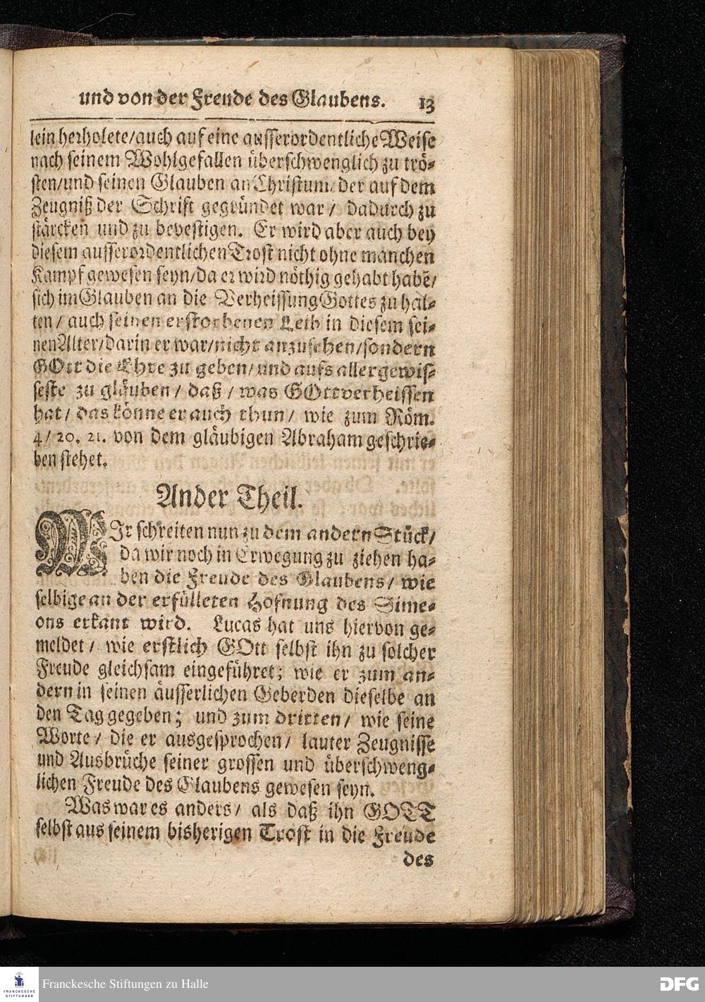 Der Trost und die Freude des Glaubens / Am Tage Mariä Reinigung MDCCXVI. Aus dem Evangelio Luc.II, 22--32. In der St.Ulrichs=Kirchen in Halle vorgestellet von August Hermann Francken / S.Theol.Prof.& Past.zu S.Ulrich / und des Gymnasii Scholarcha. HALLE / Gedruckt und zu finden im Wäysen=Hause / 1716.
