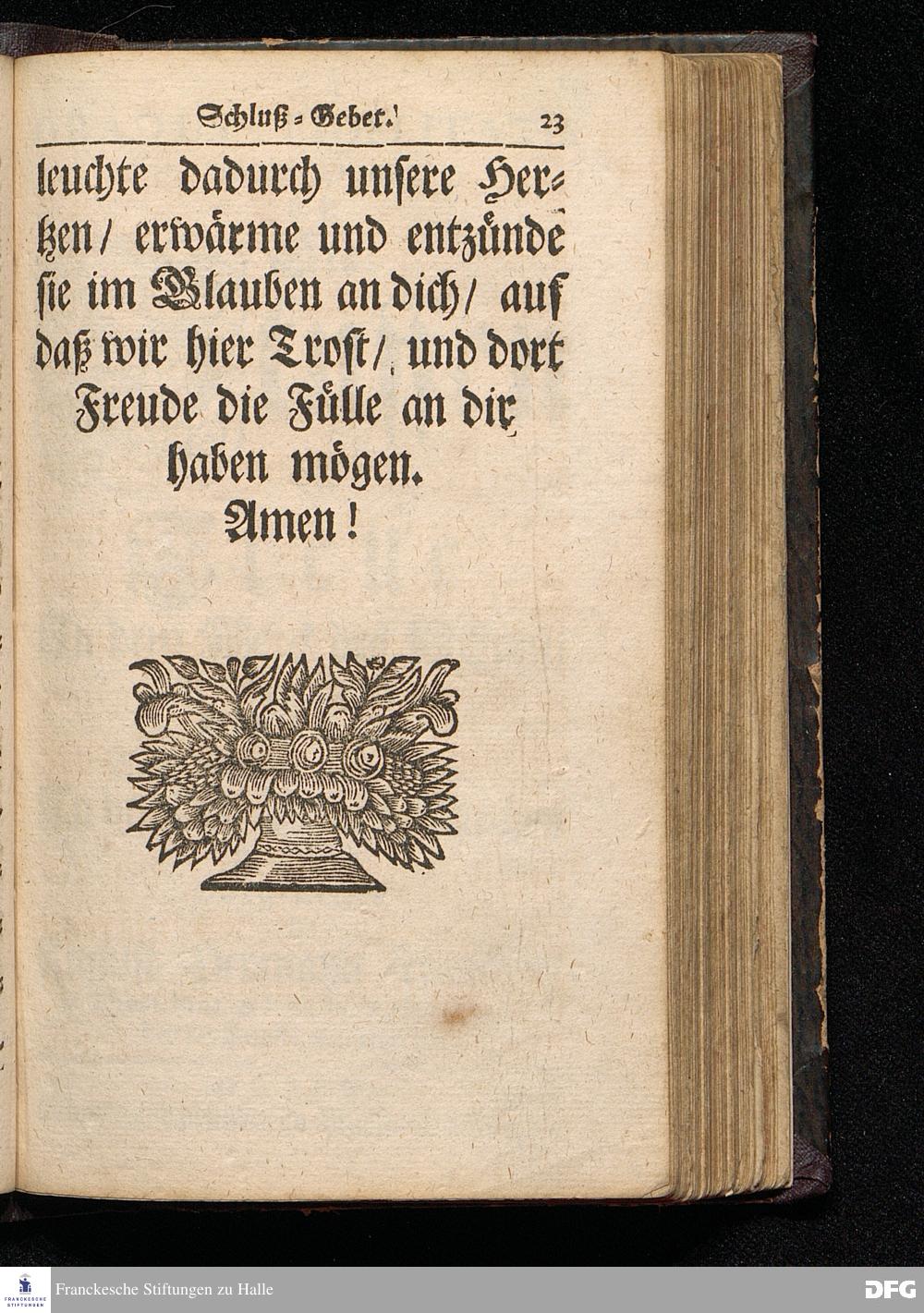 Der Trost und die Freude des Glaubens / Am Tage Mariä Reinigung MDCCXVI. Aus dem Evangelio Luc.II, 22--32. In der St.Ulrichs=Kirchen in Halle vorgestellet von August Hermann Francken / S.Theol.Prof.& Past.zu S.Ulrich / und des Gymnasii Scholarcha. HALLE / Gedruckt und zu finden im Wäysen=Hause / 1716.