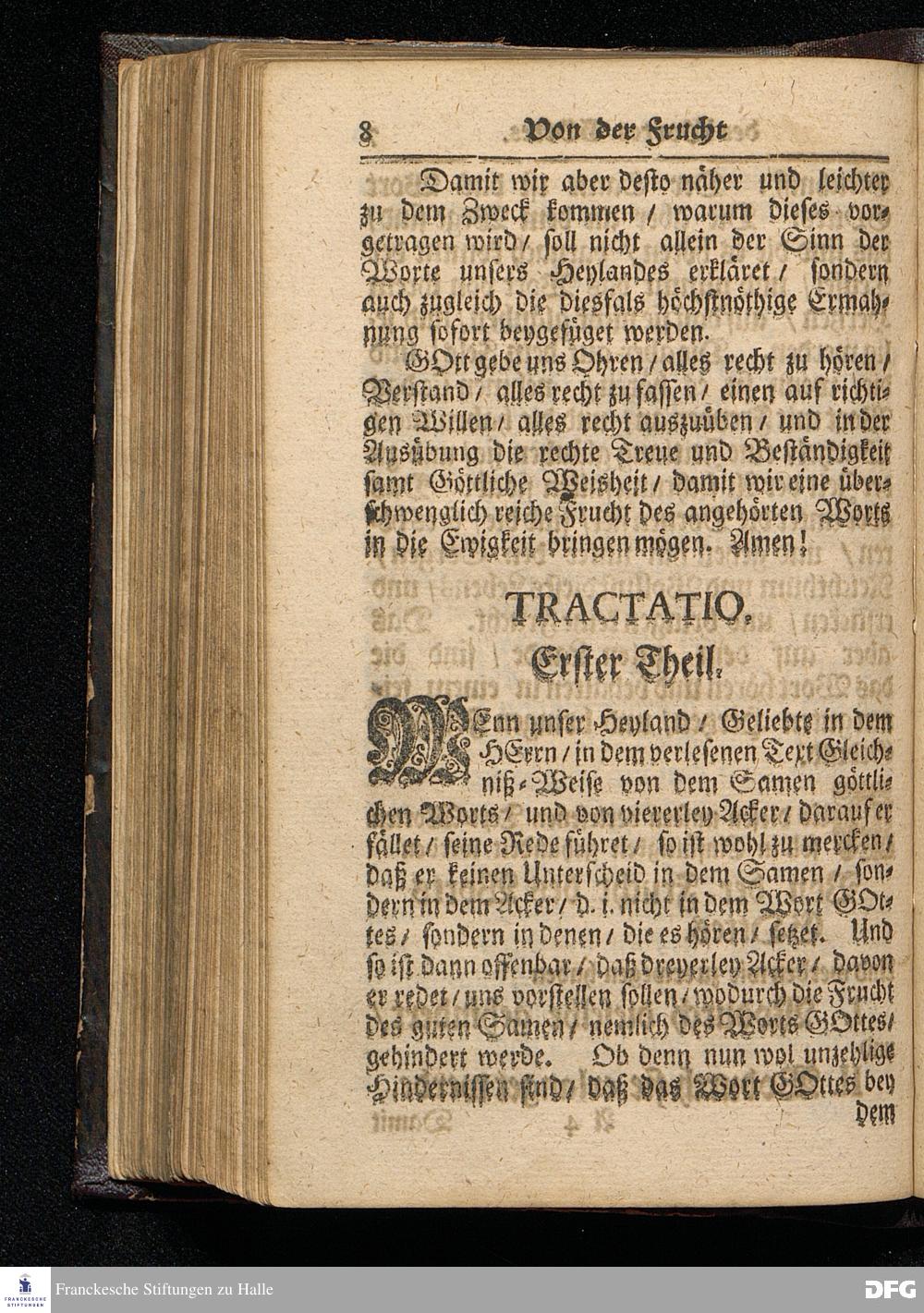 Die Frucht des Wortes Gottes / Auf Sexagesima MDCCXVI. Aus Luc.VIII,4--15. In der St.Ulrichs=Kirchen in Halle / vorgestellet von August Hermann Francken / S.Theol.Prof.& Past.zu S.Ulrich / und des Gymnasii Scholarcha. HALLE / Gedruckt und zu finden im Wäysen=Hause / 1716