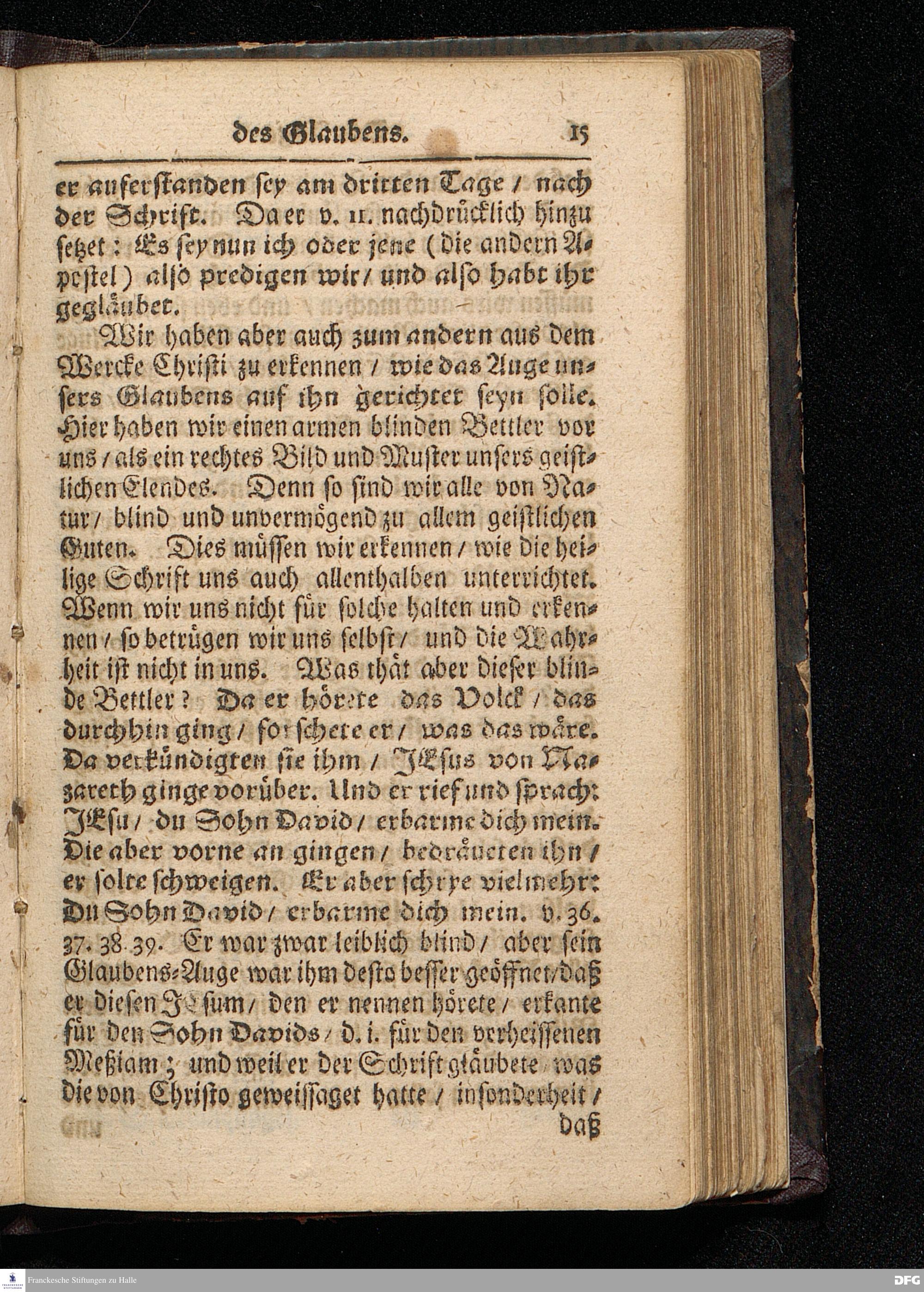 Das Auge des Glaubens / Wie es 1. auf die H.Schrift / 2.auf JESUM Christum zu richten sey / Auf Quinquagesima MDCCXVI. Aus Luc. XIIX, 31--43. In der St.Ulrichs=Kirchen in Halle / vorgestellet von August Hermann Francken / S.Theol.Prof.& Past. zu S.Ulrich und des Gymnasii Scholarcha. HALLE / Gedruckt und zu finden im Wäysen=Hause 1716.