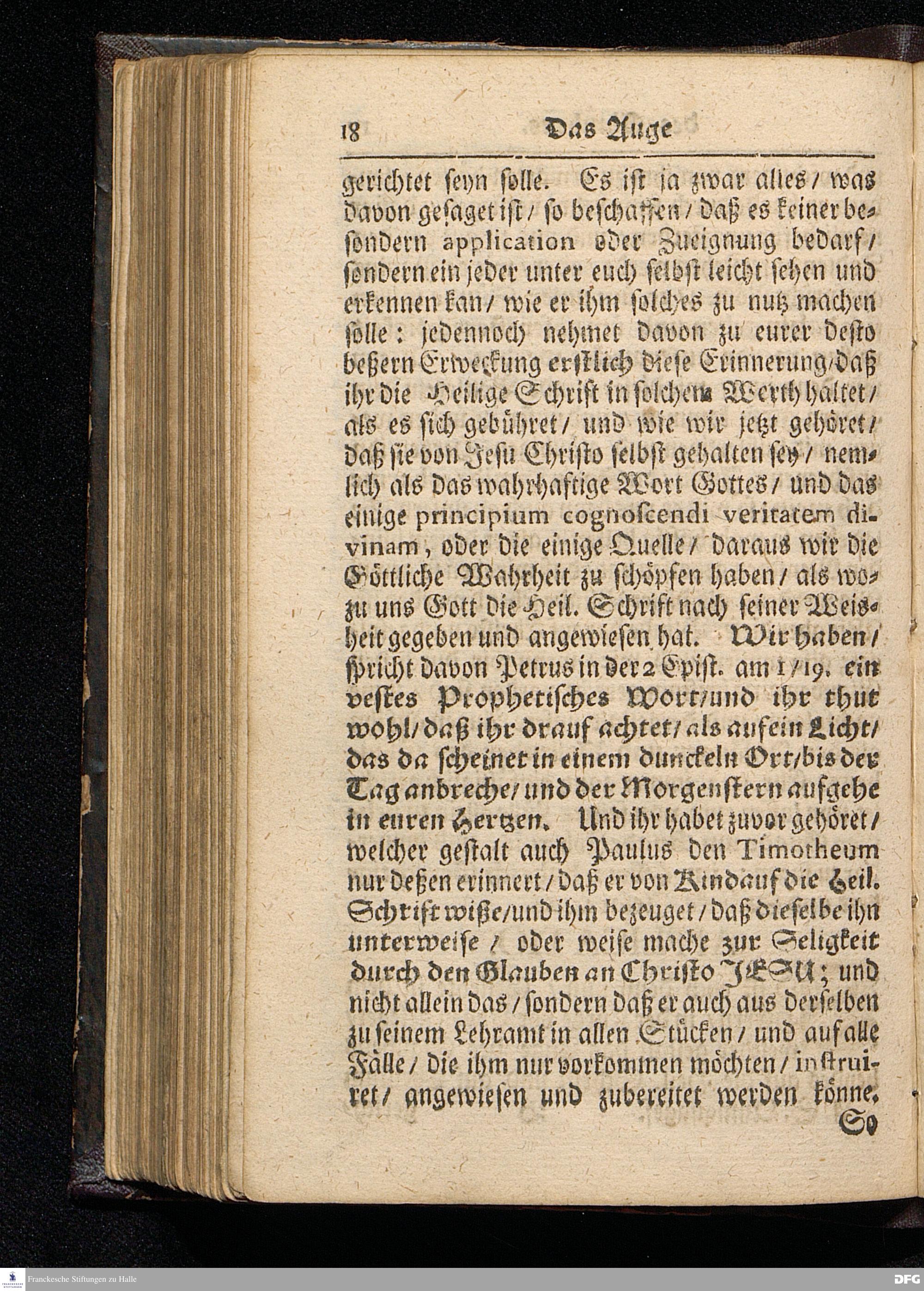 Das Auge des Glaubens / Wie es 1. auf die H.Schrift / 2.auf JESUM Christum zu richten sey / Auf Quinquagesima MDCCXVI. Aus Luc. XIIX, 31--43. In der St.Ulrichs=Kirchen in Halle / vorgestellet von August Hermann Francken / S.Theol.Prof.& Past. zu S.Ulrich und des Gymnasii Scholarcha. HALLE / Gedruckt und zu finden im Wäysen=Hause 1716.