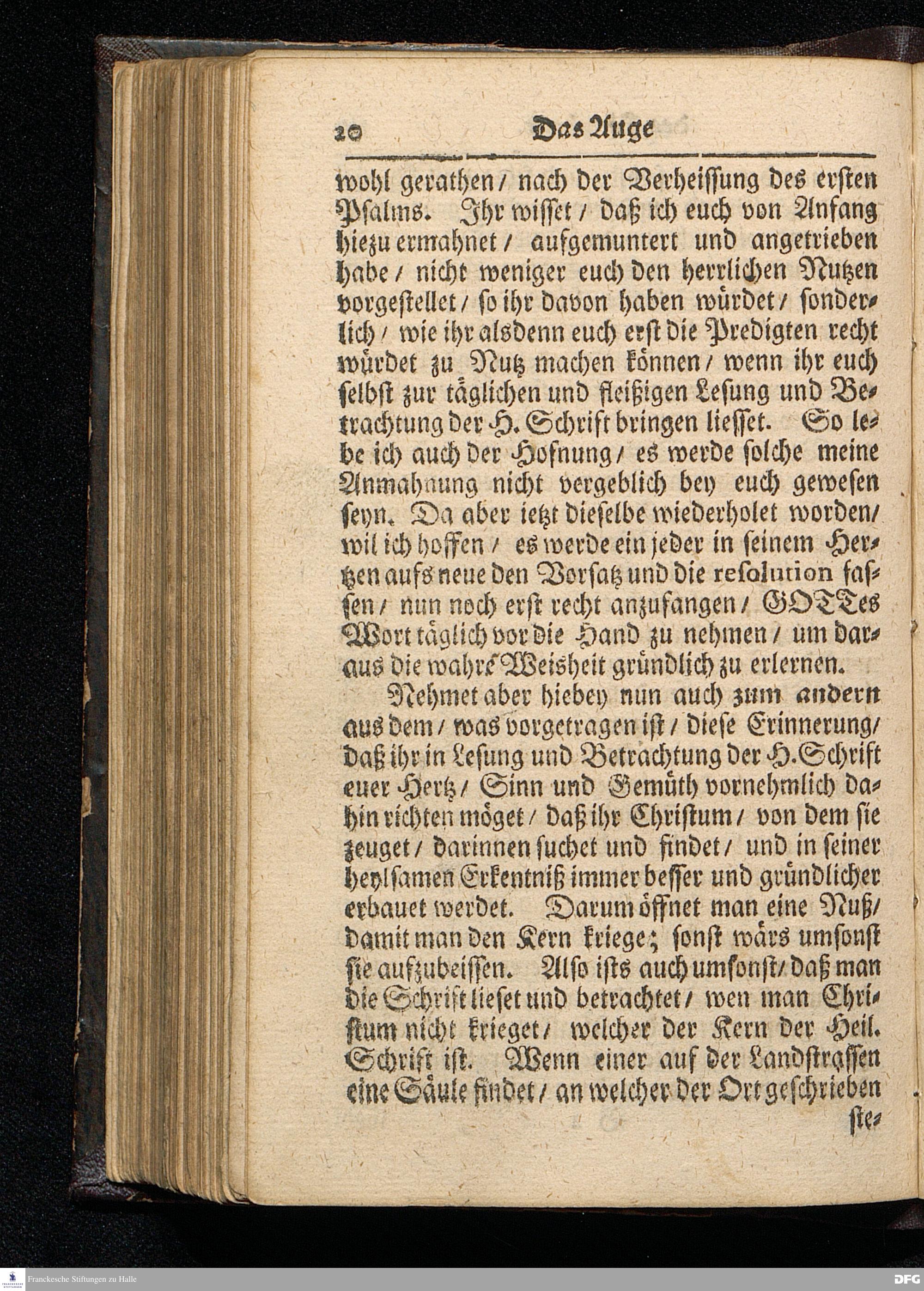 Das Auge des Glaubens / Wie es 1. auf die H.Schrift / 2.auf JESUM Christum zu richten sey / Auf Quinquagesima MDCCXVI. Aus Luc. XIIX, 31--43. In der St.Ulrichs=Kirchen in Halle / vorgestellet von August Hermann Francken / S.Theol.Prof.& Past. zu S.Ulrich und des Gymnasii Scholarcha. HALLE / Gedruckt und zu finden im Wäysen=Hause 1716.