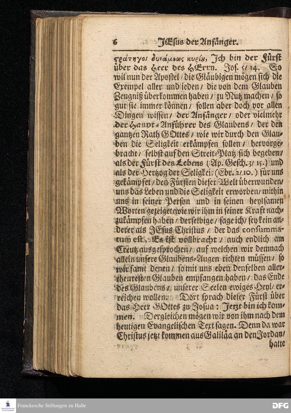 JEsus Als der Anfänger und Hertzog des Glaubens / Auf Invocavit MDCCXVI. Aus Matth.IV, 1--11. In der St.Ulrichs=Kirchen in Halle / vorgestellet von August Hermann Francken / S.Theol.Prof.& Past.zu S.Ulrich / und des Gymnasii Scholarcha. HALLE / Gedruckt und zu finden im Wäysen=Hause / 1716.