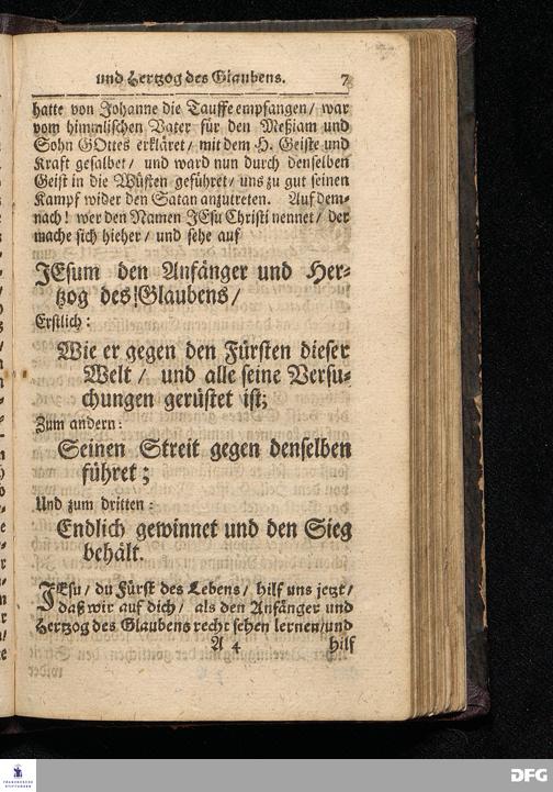 JEsus Als der Anfänger und Hertzog des Glaubens / Auf Invocavit MDCCXVI. Aus Matth.IV, 1--11. In der St.Ulrichs=Kirchen in Halle / vorgestellet von August Hermann Francken / S.Theol.Prof.& Past.zu S.Ulrich / und des Gymnasii Scholarcha. HALLE / Gedruckt und zu finden im Wäysen=Hause / 1716.