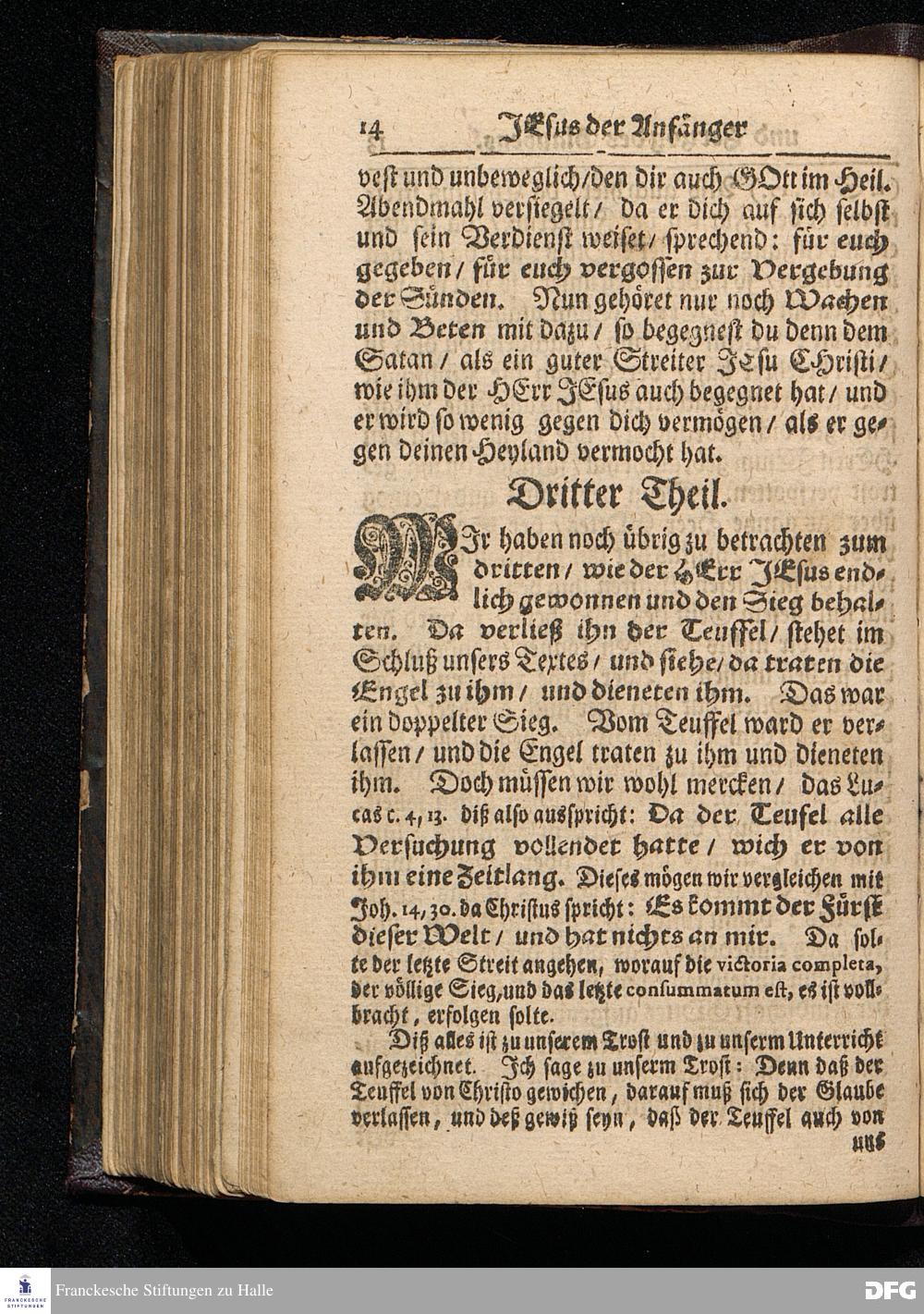 JEsus Als der Anfänger und Hertzog des Glaubens / Auf Invocavit MDCCXVI. Aus Matth.IV, 1--11. In der St.Ulrichs=Kirchen in Halle / vorgestellet von August Hermann Francken / S.Theol.Prof.& Past.zu S.Ulrich / und des Gymnasii Scholarcha. HALLE / Gedruckt und zu finden im Wäysen=Hause / 1716.
