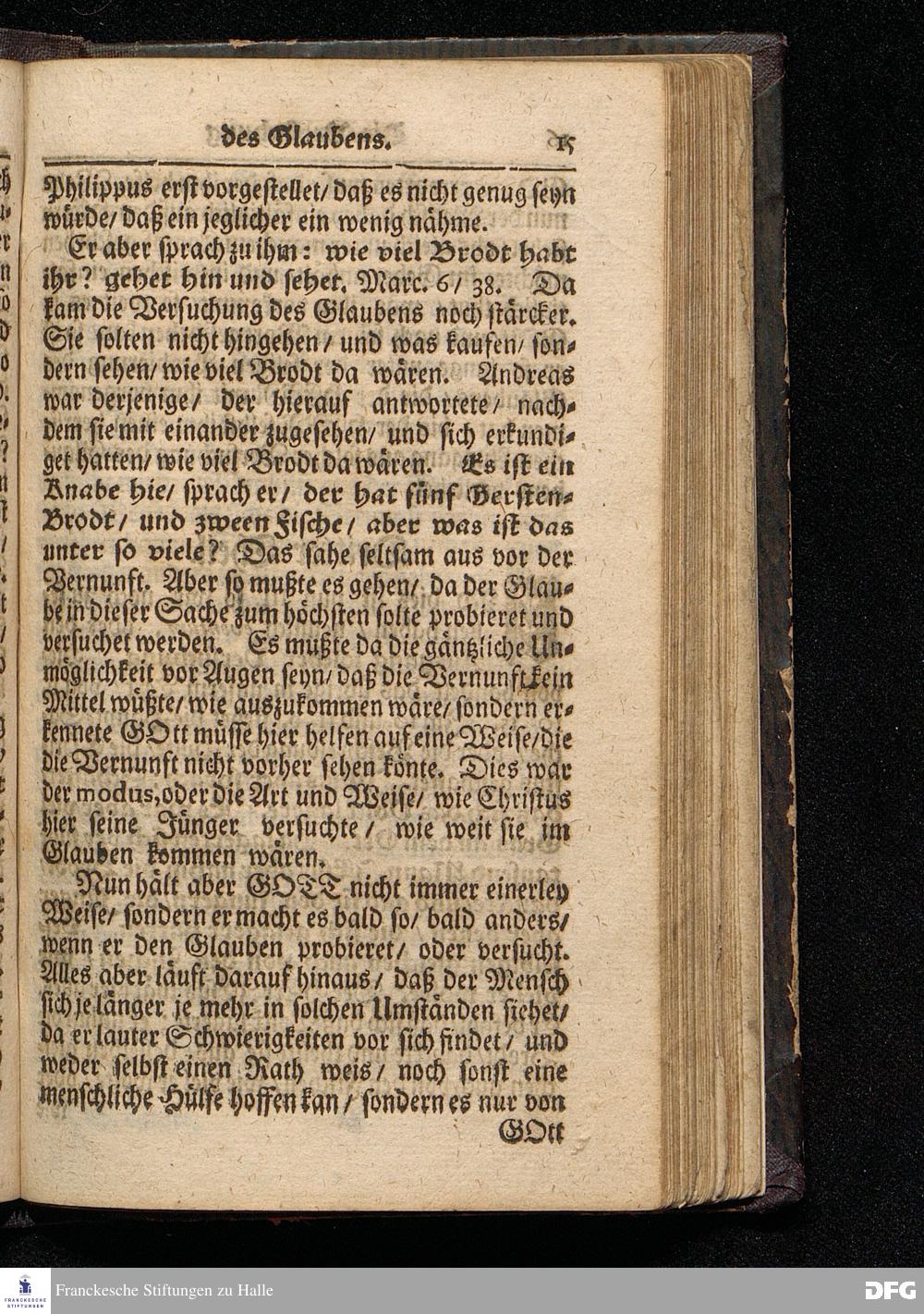 Die Versuchung des Glaubens / Auf Lætare MDCCXVI. Aus Joh.VI, 1--15. In der St.Ulrichs=Kirchen in Halle / vorgestellet von August Hermann Francken / S.Theol.Prof.& Past.zu S.Ulrich / und des Gymansii Scholarcha. HALLE / Gedruckt und zu finden im Wäysen=Hause / 1716.