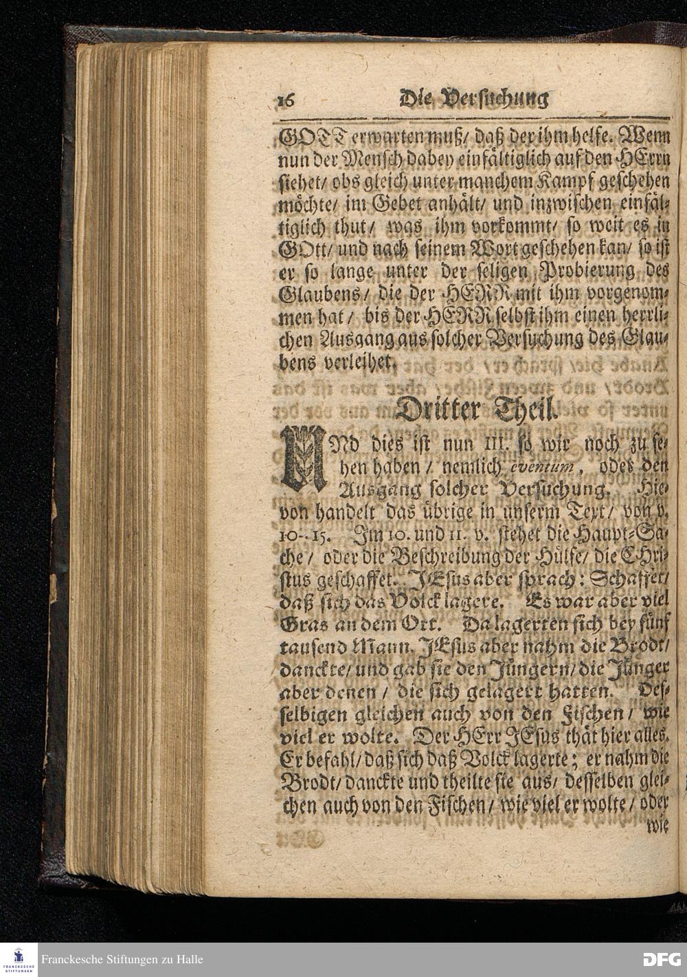 Die Versuchung des Glaubens / Auf Lætare MDCCXVI. Aus Joh.VI, 1--15. In der St.Ulrichs=Kirchen in Halle / vorgestellet von August Hermann Francken / S.Theol.Prof.& Past.zu S.Ulrich / und des Gymansii Scholarcha. HALLE / Gedruckt und zu finden im Wäysen=Hause / 1716.