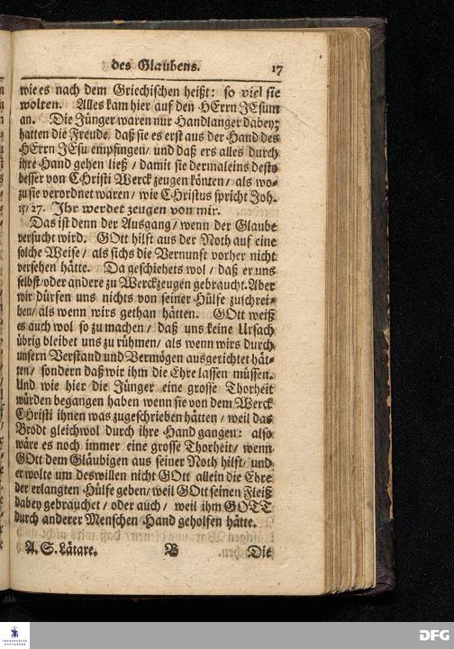 Die Versuchung des Glaubens / Auf Lætare MDCCXVI. Aus Joh.VI, 1--15. In der St.Ulrichs=Kirchen in Halle / vorgestellet von August Hermann Francken / S.Theol.Prof.& Past.zu S.Ulrich / und des Gymansii Scholarcha. HALLE / Gedruckt und zu finden im Wäysen=Hause / 1716.