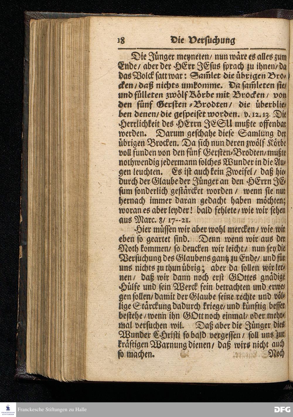 Die Versuchung des Glaubens / Auf Lætare MDCCXVI. Aus Joh.VI, 1--15. In der St.Ulrichs=Kirchen in Halle / vorgestellet von August Hermann Francken / S.Theol.Prof.& Past.zu S.Ulrich / und des Gymansii Scholarcha. HALLE / Gedruckt und zu finden im Wäysen=Hause / 1716.