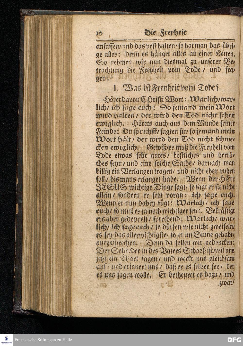 Die Freyheit vom Tode / Auf Judica MDCCXVI. Aus Joh.VIII, 46--59. In der St.Ulrichs=Kirchen in Halle / vorgestellet von August Hermann Francken / S.Theol.Prof.& Past.zu S.Ulrich / und des Gymnasii Scholarcha. HALLE / Gedruckt und zu finden im Wäysen=Hause 1716.