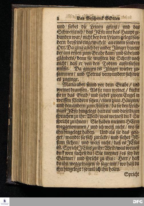 Das Geschenck GOttes In der Auferstehung JESU CHristi / Aus dem Anfang der Historie der Auferstehung JEsu CHristi Nach allen 4.Evangelisten Am Isten Oster=Feyertage In der St.Ulrichs=Kirchen in Halle angewiesen von August Hermann Francken / S.Theol.Prof.& Past.zu S.Ulrich / und des Gymnasii Scholarcha. HALLE / Gedruckt und zu finden im Wäysen=Hause 1716.