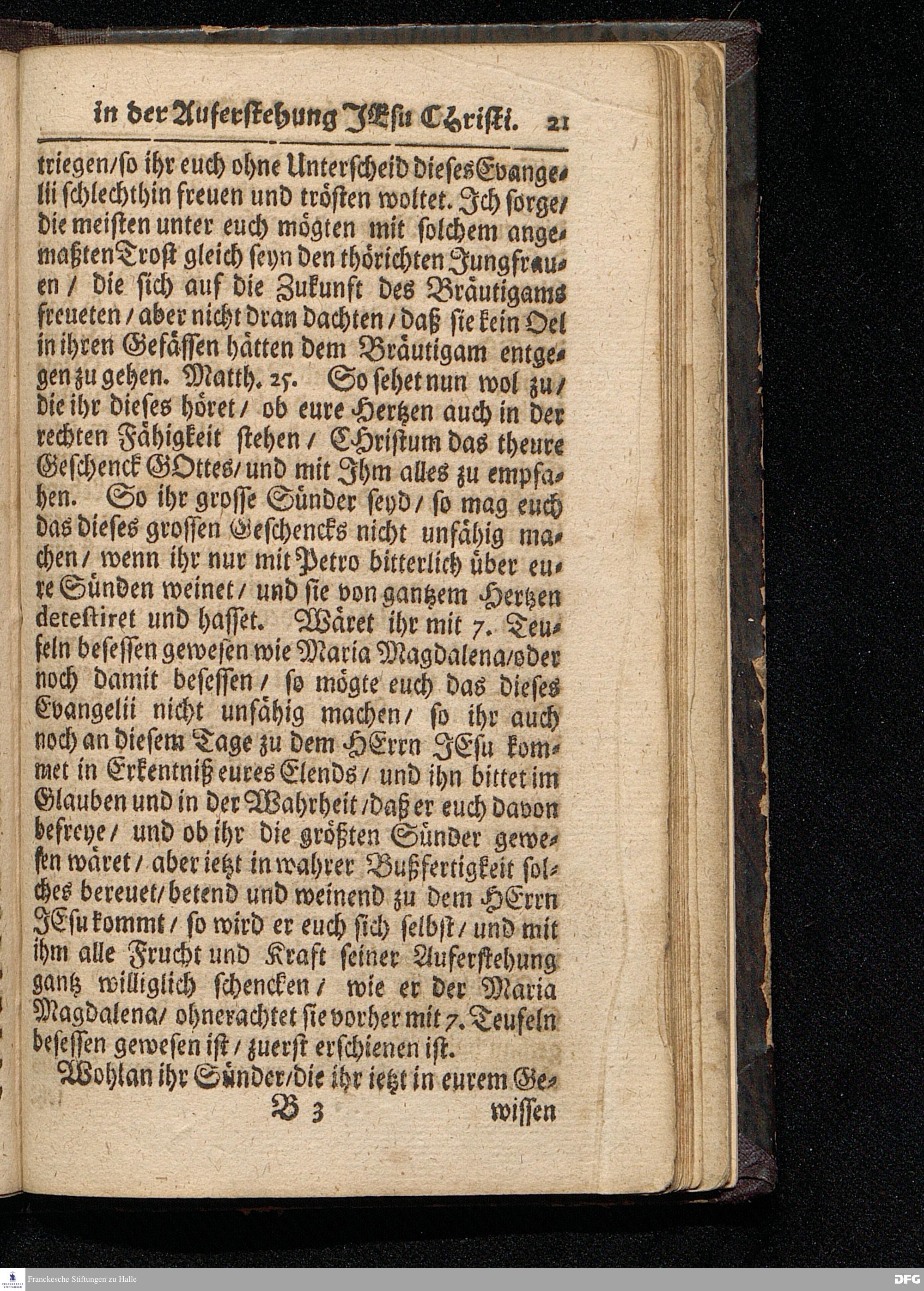 Das Geschenck GOttes In der Auferstehung JESU CHristi / Aus dem Anfang der Historie der Auferstehung JEsu CHristi Nach allen 4.Evangelisten Am Isten Oster=Feyertage In der St.Ulrichs=Kirchen in Halle angewiesen von August Hermann Francken / S.Theol.Prof.& Past.zu S.Ulrich / und des Gymnasii Scholarcha. HALLE / Gedruckt und zu finden im Wäysen=Hause 1716.