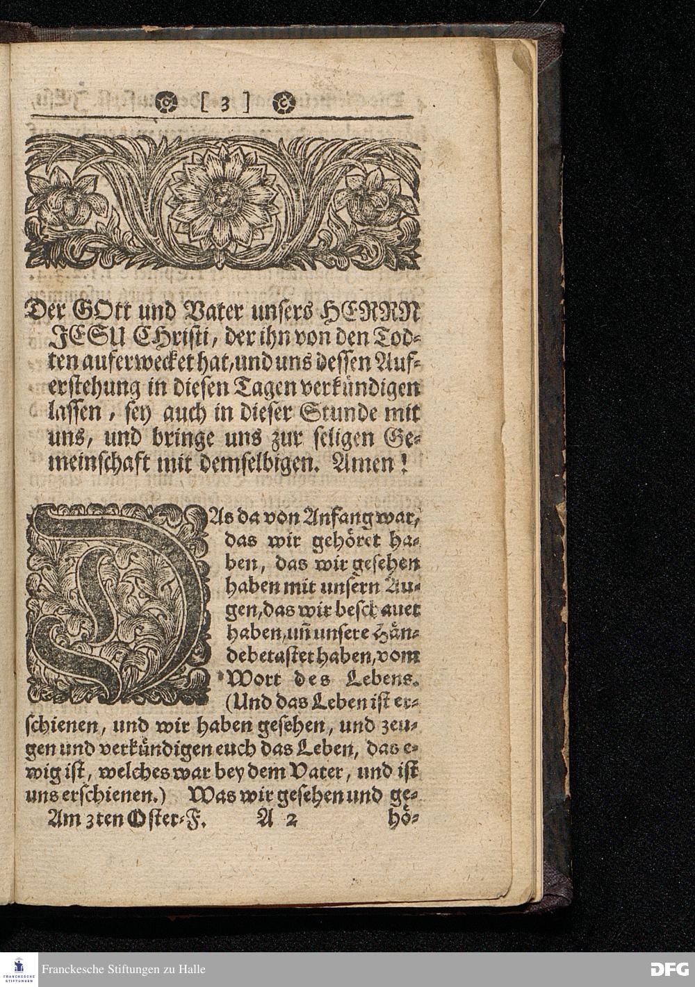 Die Gemeinschaft mit dem auferstandenen JEsu / Als Der Zweck seiner Erscheinung / Am 3ten Oster=Feyertage MDCCXVI. Aus dem Evangelio Luc.XXIV, 36--47. In der Schul=Kirche zu Halle vorgestellet von August Hermann Francken / S.Theolog.Prof.& Past.zu S.Ulrich, und des Gymnasii Scholarcha. HALLE, Gedruckt und zu finden im Wäysen=Hause. Anno 1716.