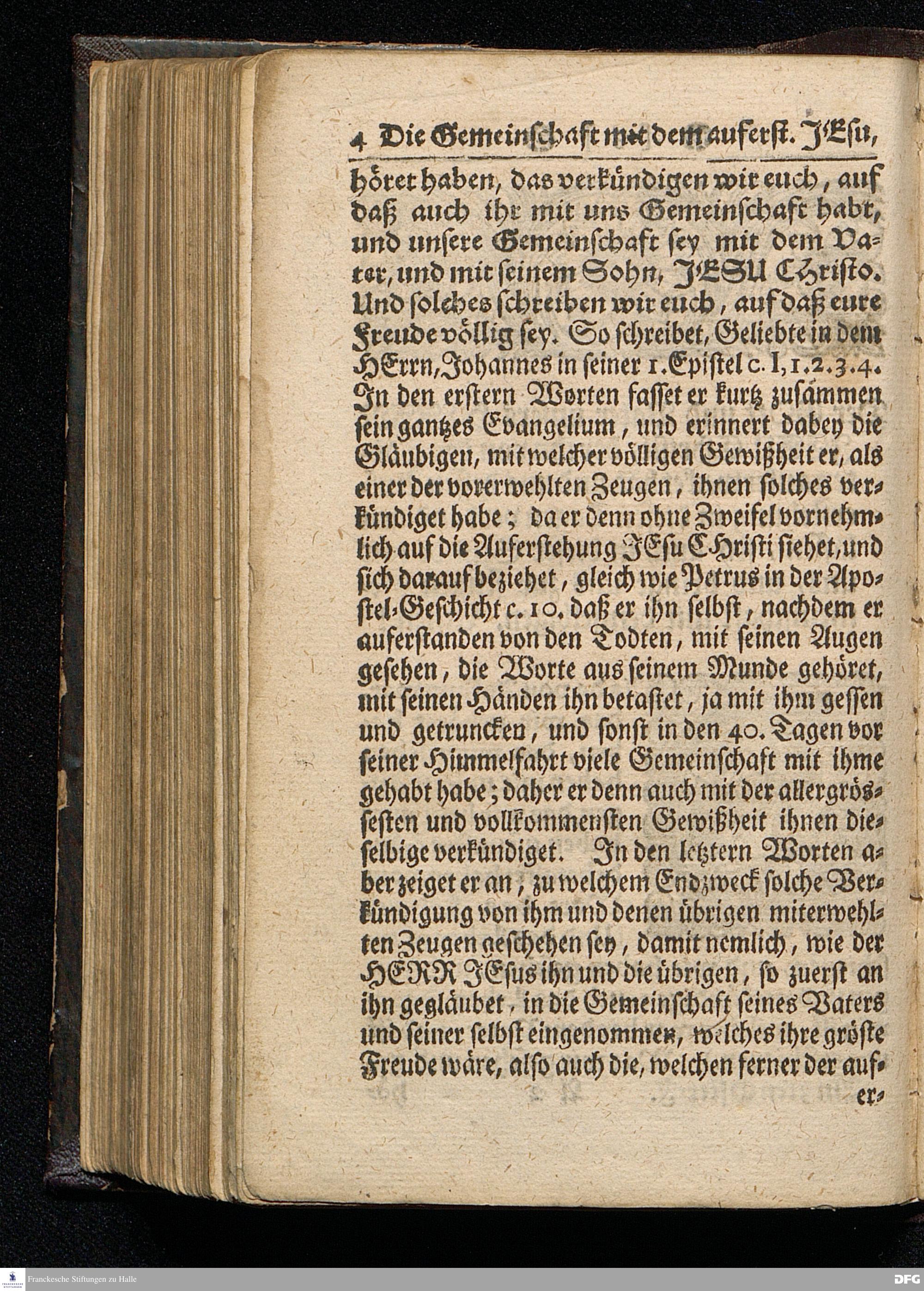 Die Gemeinschaft mit dem auferstandenen JEsu / Als Der Zweck seiner Erscheinung / Am 3ten Oster=Feyertage MDCCXVI. Aus dem Evangelio Luc.XXIV, 36--47. In der Schul=Kirche zu Halle vorgestellet von August Hermann Francken / S.Theolog.Prof.& Past.zu S.Ulrich, und des Gymnasii Scholarcha. HALLE, Gedruckt und zu finden im Wäysen=Hause. Anno 1716.