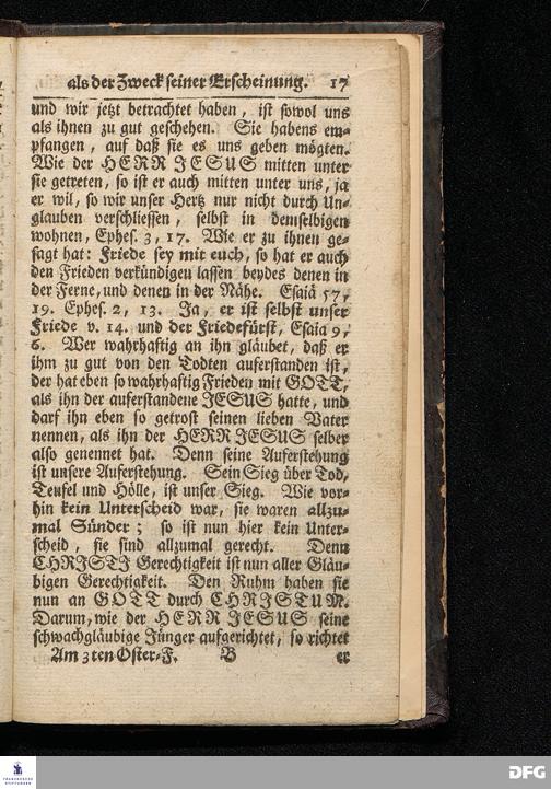 Die Gemeinschaft mit dem auferstandenen JEsu / Als Der Zweck seiner Erscheinung / Am 3ten Oster=Feyertage MDCCXVI. Aus dem Evangelio Luc.XXIV, 36--47. In der Schul=Kirche zu Halle vorgestellet von August Hermann Francken / S.Theolog.Prof.& Past.zu S.Ulrich, und des Gymnasii Scholarcha. HALLE, Gedruckt und zu finden im Wäysen=Hause. Anno 1716.