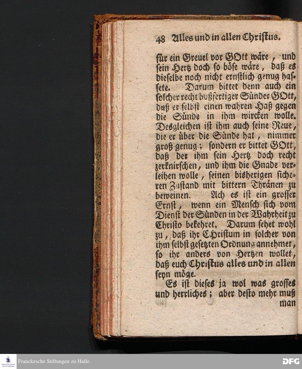 Alles und In allen Christus, Aus dem Evangelischen Text Luc.I, 39--56. Am Fest der Heimsuchung Mariä 1714. In der Stadt Cönnern im Hertzogthum Magdeburg, In öffentlicher Predigt vorgestellet von August Hermann Francken, S.Theol.Prof.Past.Vlr.& Scholarch. EDITIO III. Der Jugend in den Schulen des Wäysenhauses nach gehaltenem Examine ausgetheilet den 25.Iulii MDCCXXII. HALLE, In Verlegung des Wäysenhauses, MDCCXXXXII.