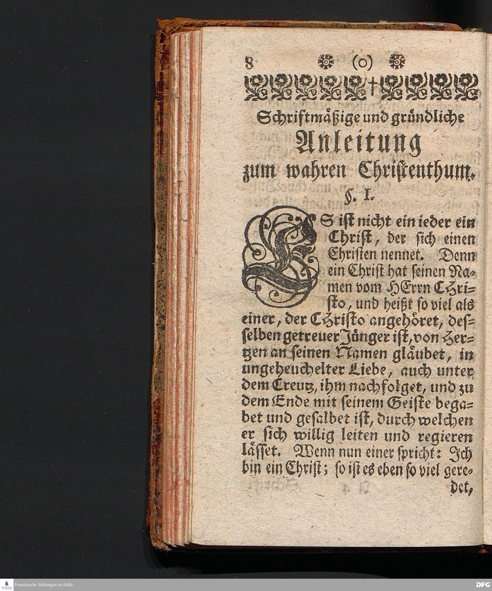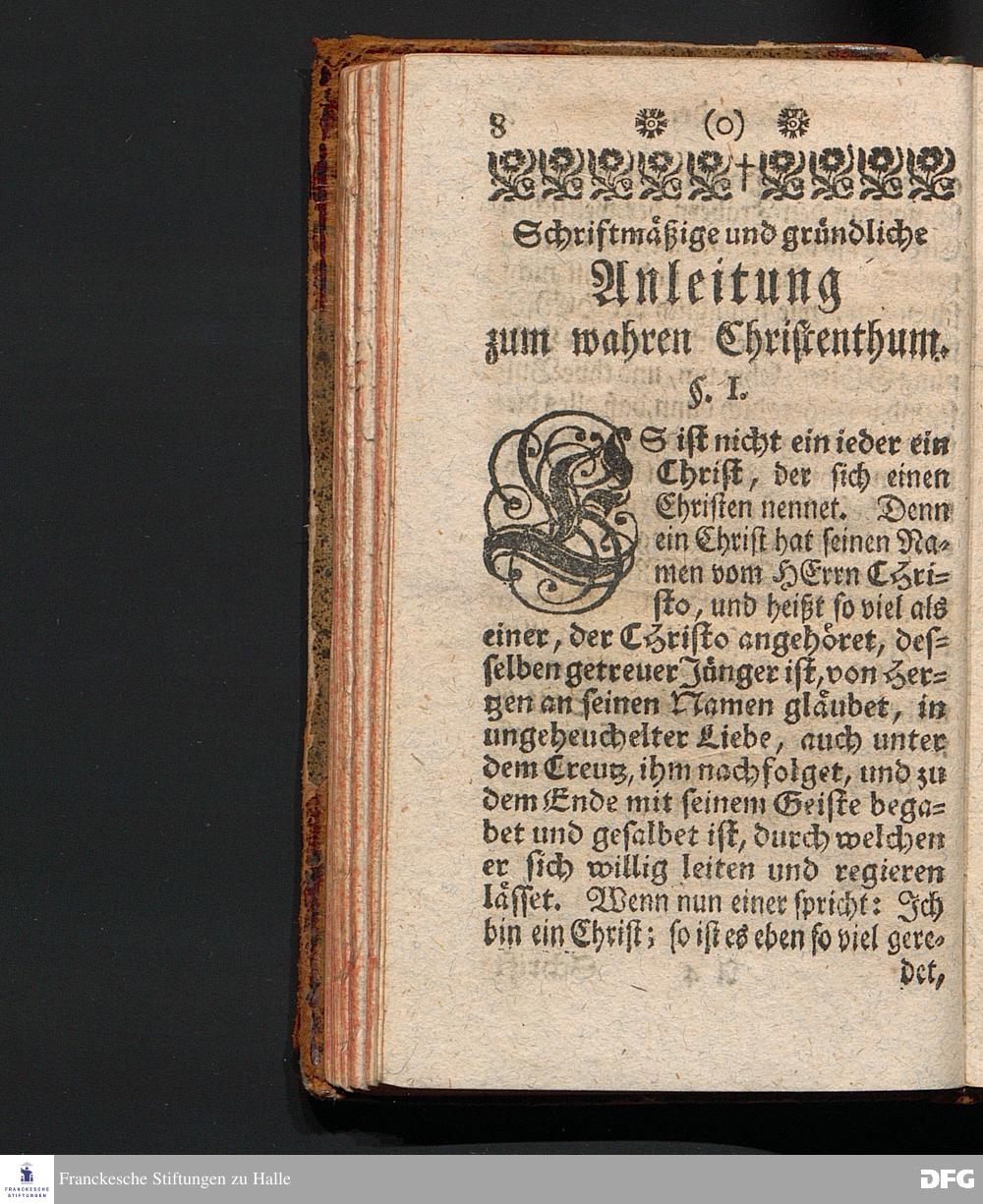 Die Lehre Vom Anfang Christliches Lebens, Bestehend in vier Theilen: I. In einer gründlichen Anleitung zu wahrer Busse und Glauben an GOTT. II. In einem einfältigen Unterricht, wie man die H.Schrift zu seiner wahren Erbauung lesen solle. III. In einer Schriftmäßigen Anweisung, recht und GOTT gefällig zu beten. IV. In einer kurtzen Prüfung, ob man den wahren lebendigen Glauben an CHristum habe oder nicht. Die XVI.Auflage. HALLE, In Verlegung des Wäysenhauses, 1740.