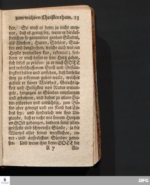 Die Lehre Vom Anfang Christliches Lebens, Bestehend in vier Theilen: I. In einer gründlichen Anleitung zu wahrer Busse und Glauben an GOTT. II. In einem einfältigen Unterricht, wie man die H.Schrift zu seiner wahren Erbauung lesen solle. III. In einer Schriftmäßigen Anweisung, recht und GOTT gefällig zu beten. IV. In einer kurtzen Prüfung, ob man den wahren lebendigen Glauben an CHristum habe oder nicht. Die XVI.Auflage. HALLE, In Verlegung des Wäysenhauses, 1740.