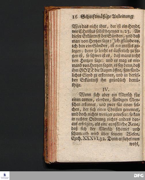Die Lehre Vom Anfang Christliches Lebens, Bestehend in vier Theilen: I. In einer gründlichen Anleitung zu wahrer Busse und Glauben an GOTT. II. In einem einfältigen Unterricht, wie man die H.Schrift zu seiner wahren Erbauung lesen solle. III. In einer Schriftmäßigen Anweisung, recht und GOTT gefällig zu beten. IV. In einer kurtzen Prüfung, ob man den wahren lebendigen Glauben an CHristum habe oder nicht. Die XVI.Auflage. HALLE, In Verlegung des Wäysenhauses, 1740.