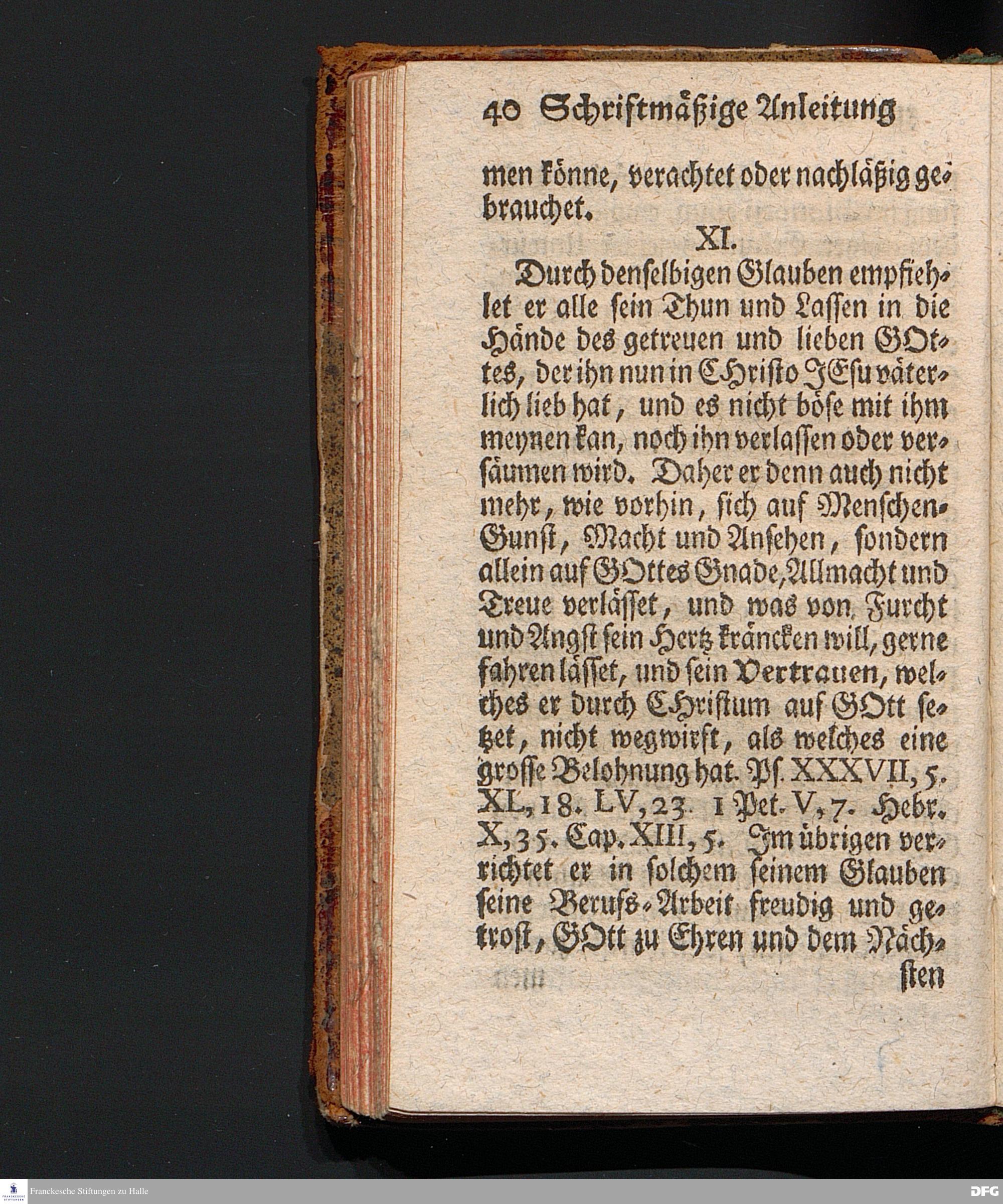 Die Lehre Vom Anfang Christliches Lebens, Bestehend in vier Theilen: I. In einer gründlichen Anleitung zu wahrer Busse und Glauben an GOTT. II. In einem einfältigen Unterricht, wie man die H.Schrift zu seiner wahren Erbauung lesen solle. III. In einer Schriftmäßigen Anweisung, recht und GOTT gefällig zu beten. IV. In einer kurtzen Prüfung, ob man den wahren lebendigen Glauben an CHristum habe oder nicht. Die XVI.Auflage. HALLE, In Verlegung des Wäysenhauses, 1740.
