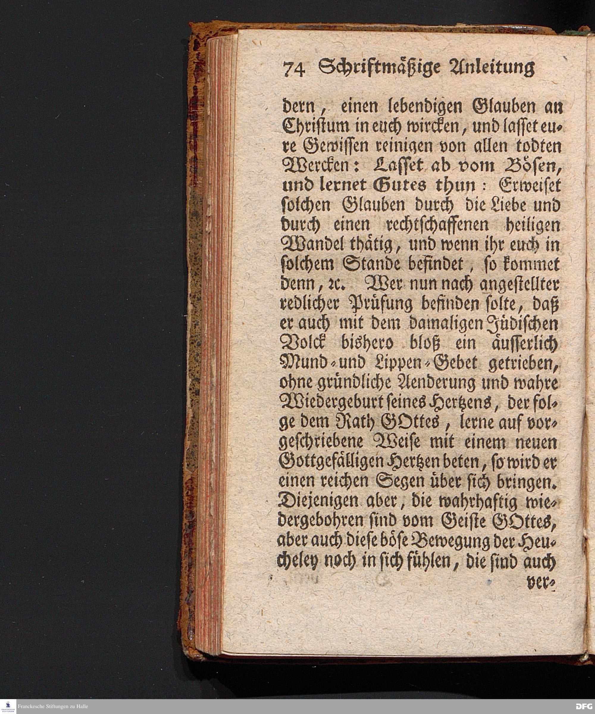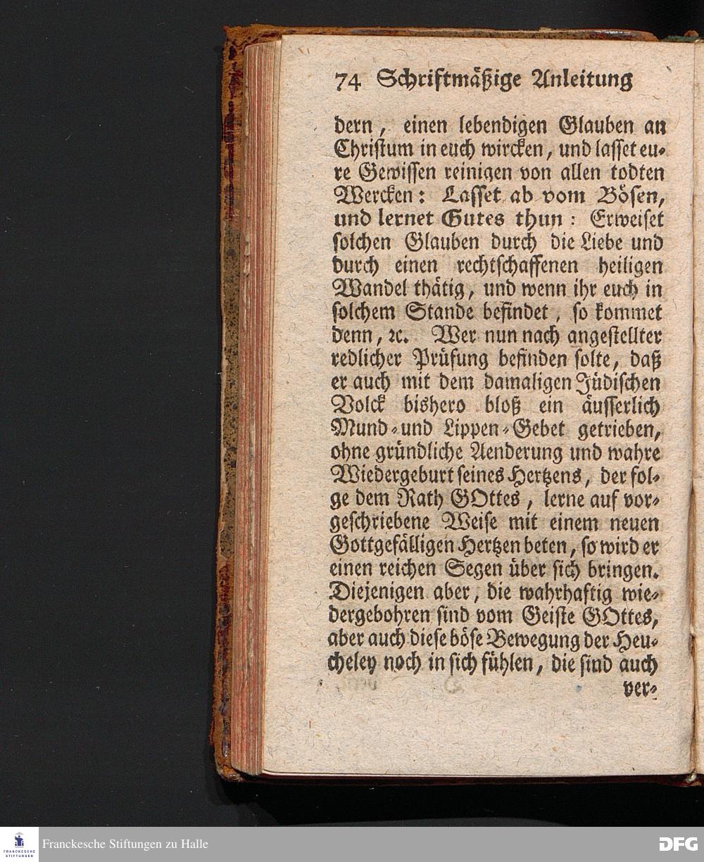 Die Lehre Vom Anfang Christliches Lebens, Bestehend in vier Theilen: I. In einer gründlichen Anleitung zu wahrer Busse und Glauben an GOTT. II. In einem einfältigen Unterricht, wie man die H.Schrift zu seiner wahren Erbauung lesen solle. III. In einer Schriftmäßigen Anweisung, recht und GOTT gefällig zu beten. IV. In einer kurtzen Prüfung, ob man den wahren lebendigen Glauben an CHristum habe oder nicht. Die XVI.Auflage. HALLE, In Verlegung des Wäysenhauses, 1740.