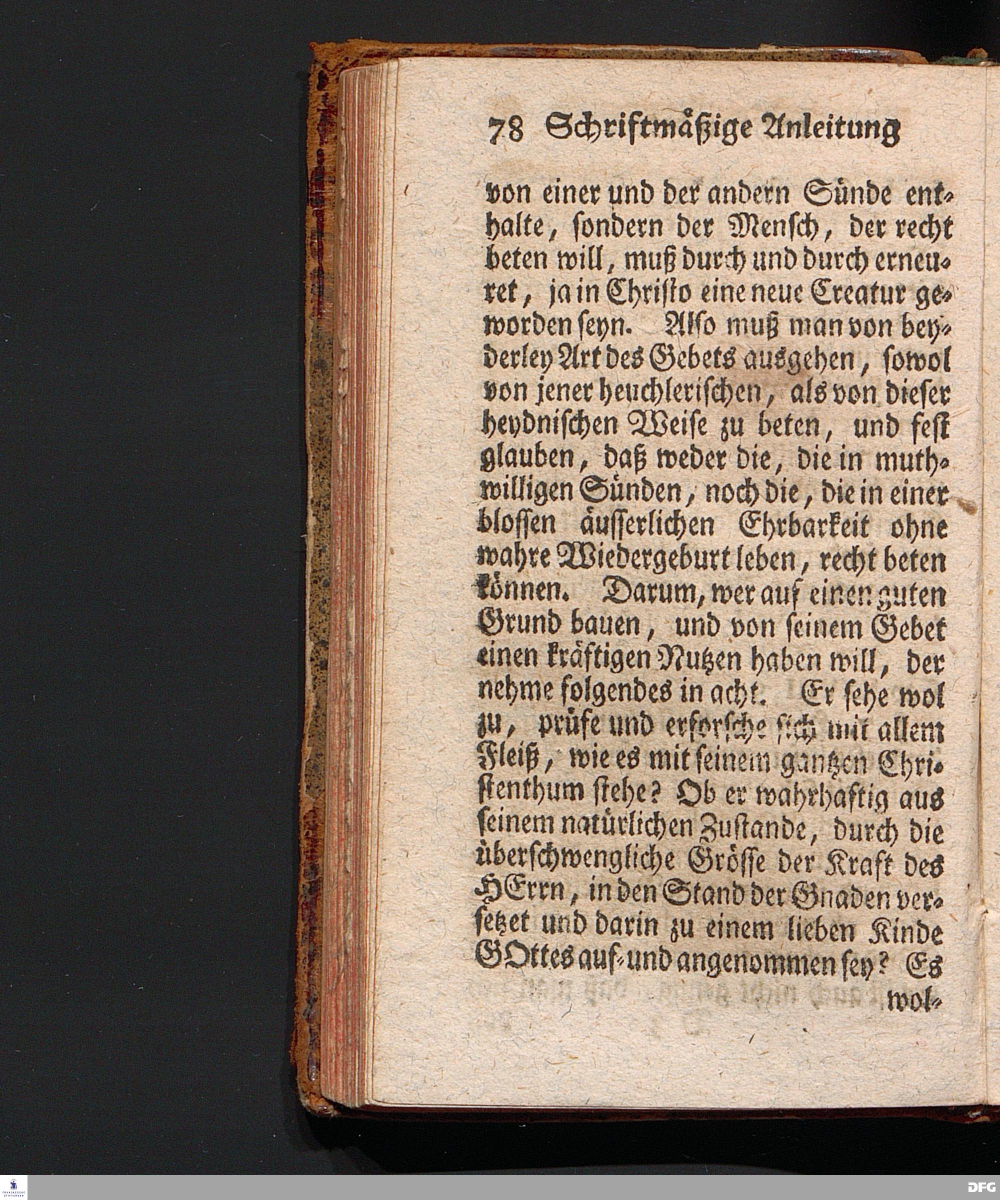 Die Lehre Vom Anfang Christliches Lebens, Bestehend in vier Theilen: I. In einer gründlichen Anleitung zu wahrer Busse und Glauben an GOTT. II. In einem einfältigen Unterricht, wie man die H.Schrift zu seiner wahren Erbauung lesen solle. III. In einer Schriftmäßigen Anweisung, recht und GOTT gefällig zu beten. IV. In einer kurtzen Prüfung, ob man den wahren lebendigen Glauben an CHristum habe oder nicht. Die XVI.Auflage. HALLE, In Verlegung des Wäysenhauses, 1740.