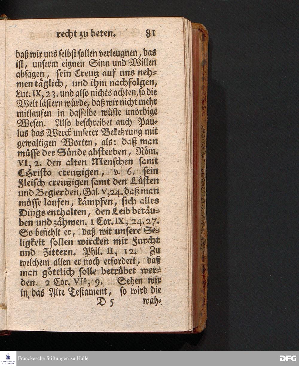 Die Lehre Vom Anfang Christliches Lebens, Bestehend in vier Theilen: I. In einer gründlichen Anleitung zu wahrer Busse und Glauben an GOTT. II. In einem einfältigen Unterricht, wie man die H.Schrift zu seiner wahren Erbauung lesen solle. III. In einer Schriftmäßigen Anweisung, recht und GOTT gefällig zu beten. IV. In einer kurtzen Prüfung, ob man den wahren lebendigen Glauben an CHristum habe oder nicht. Die XVI.Auflage. HALLE, In Verlegung des Wäysenhauses, 1740.