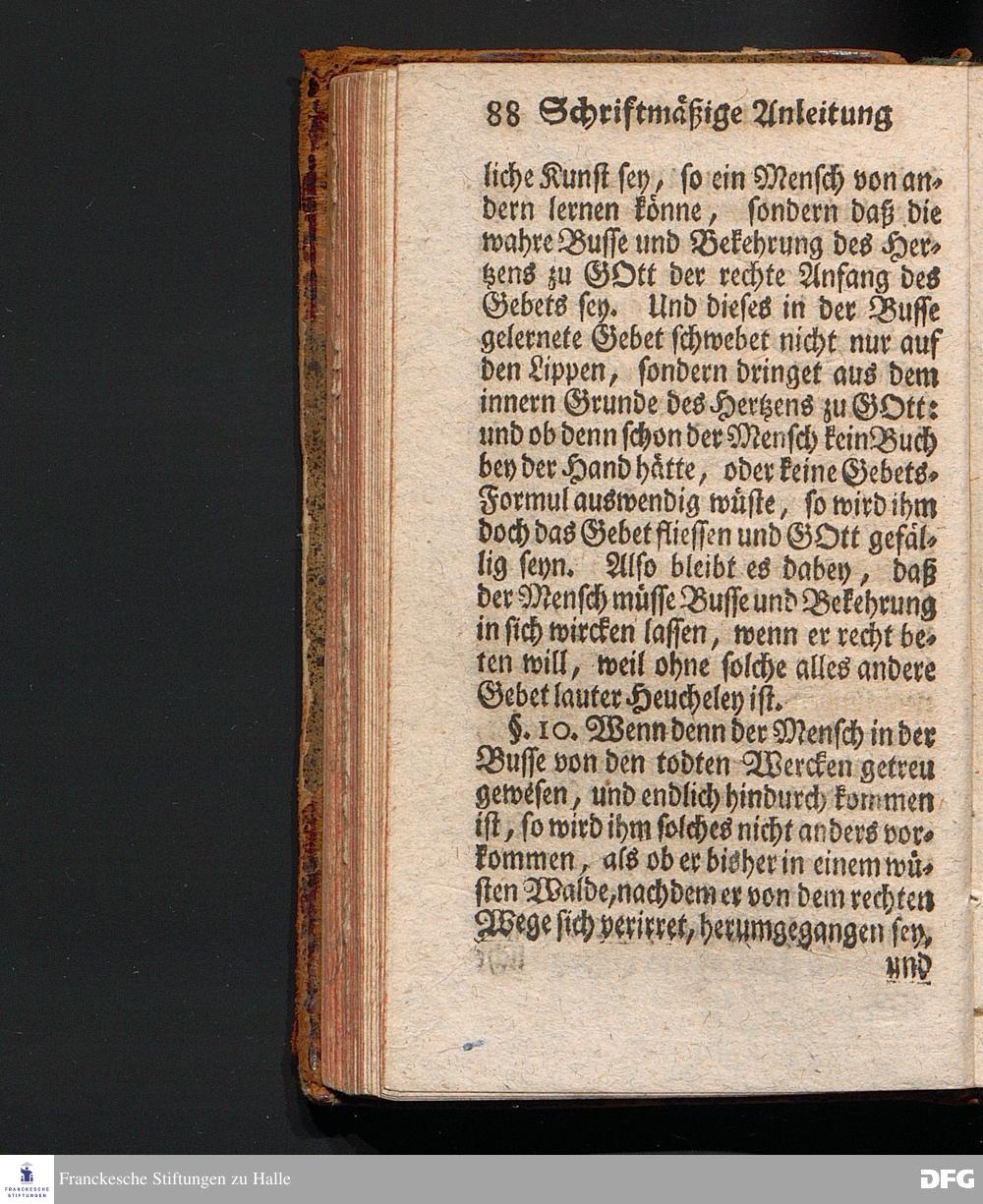 Die Lehre Vom Anfang Christliches Lebens, Bestehend in vier Theilen: I. In einer gründlichen Anleitung zu wahrer Busse und Glauben an GOTT. II. In einem einfältigen Unterricht, wie man die H.Schrift zu seiner wahren Erbauung lesen solle. III. In einer Schriftmäßigen Anweisung, recht und GOTT gefällig zu beten. IV. In einer kurtzen Prüfung, ob man den wahren lebendigen Glauben an CHristum habe oder nicht. Die XVI.Auflage. HALLE, In Verlegung des Wäysenhauses, 1740.