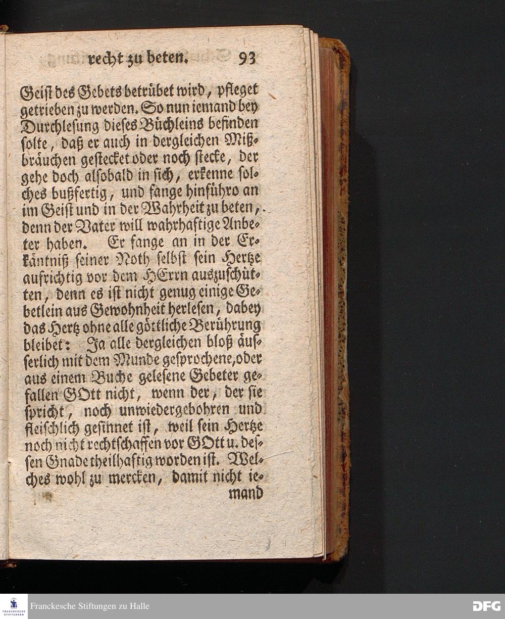 Die Lehre Vom Anfang Christliches Lebens, Bestehend in vier Theilen: I. In einer gründlichen Anleitung zu wahrer Busse und Glauben an GOTT. II. In einem einfältigen Unterricht, wie man die H.Schrift zu seiner wahren Erbauung lesen solle. III. In einer Schriftmäßigen Anweisung, recht und GOTT gefällig zu beten. IV. In einer kurtzen Prüfung, ob man den wahren lebendigen Glauben an CHristum habe oder nicht. Die XVI.Auflage. HALLE, In Verlegung des Wäysenhauses, 1740.