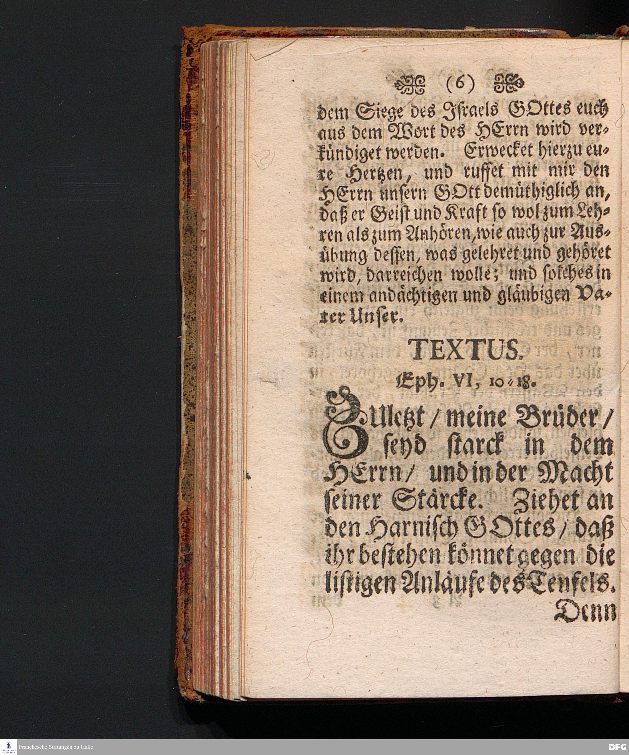 Die Apostolische Aufmunterung Zur Ausübung Der guten Ritterschafft / In einer Predigt Uber die Epistel Ephes.VI, 10-18. Am XXI.Sonntag nach Trinit. 1703. In der Schul=Kirche zu Halle vorgestellet Von August Hermann Francken / SS.Theol.Prof.Ord.Past.Vlr. & Schol. Andere Auflage. HALLE, Gedruckt im Wäysen=Hause Anno 1723.
