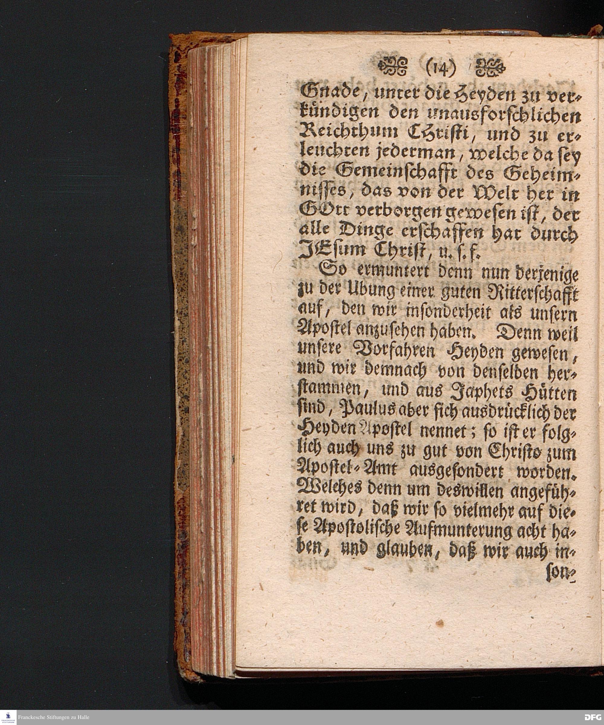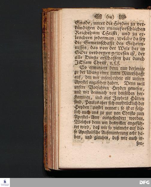 Die Apostolische Aufmunterung Zur Ausübung Der guten Ritterschafft / In einer Predigt Uber die Epistel Ephes.VI, 10-18. Am XXI.Sonntag nach Trinit. 1703. In der Schul=Kirche zu Halle vorgestellet Von August Hermann Francken / SS.Theol.Prof.Ord.Past.Vlr. & Schol. Andere Auflage. HALLE, Gedruckt im Wäysen=Hause Anno 1723.