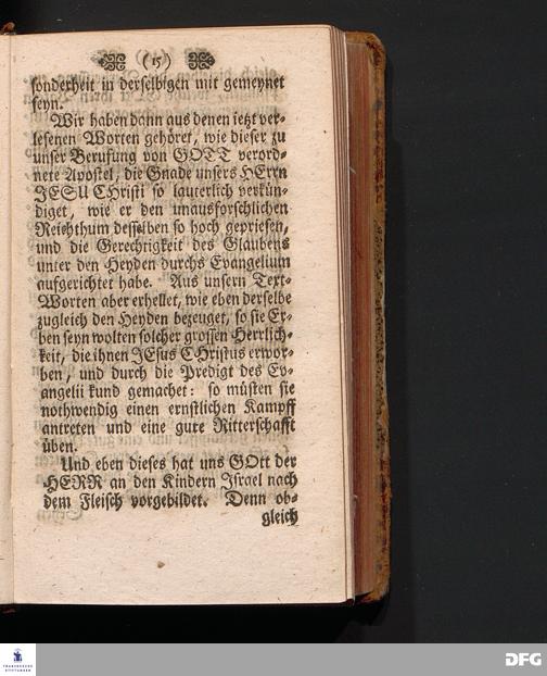 Die Apostolische Aufmunterung Zur Ausübung Der guten Ritterschafft / In einer Predigt Uber die Epistel Ephes.VI, 10-18. Am XXI.Sonntag nach Trinit. 1703. In der Schul=Kirche zu Halle vorgestellet Von August Hermann Francken / SS.Theol.Prof.Ord.Past.Vlr. & Schol. Andere Auflage. HALLE, Gedruckt im Wäysen=Hause Anno 1723.