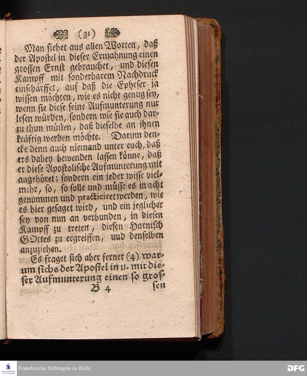 Die Apostolische Aufmunterung Zur Ausübung Der guten Ritterschafft / In einer Predigt Uber die Epistel Ephes.VI, 10-18. Am XXI.Sonntag nach Trinit. 1703. In der Schul=Kirche zu Halle vorgestellet Von August Hermann Francken / SS.Theol.Prof.Ord.Past.Vlr. & Schol. Andere Auflage. HALLE, Gedruckt im Wäysen=Hause Anno 1723.
