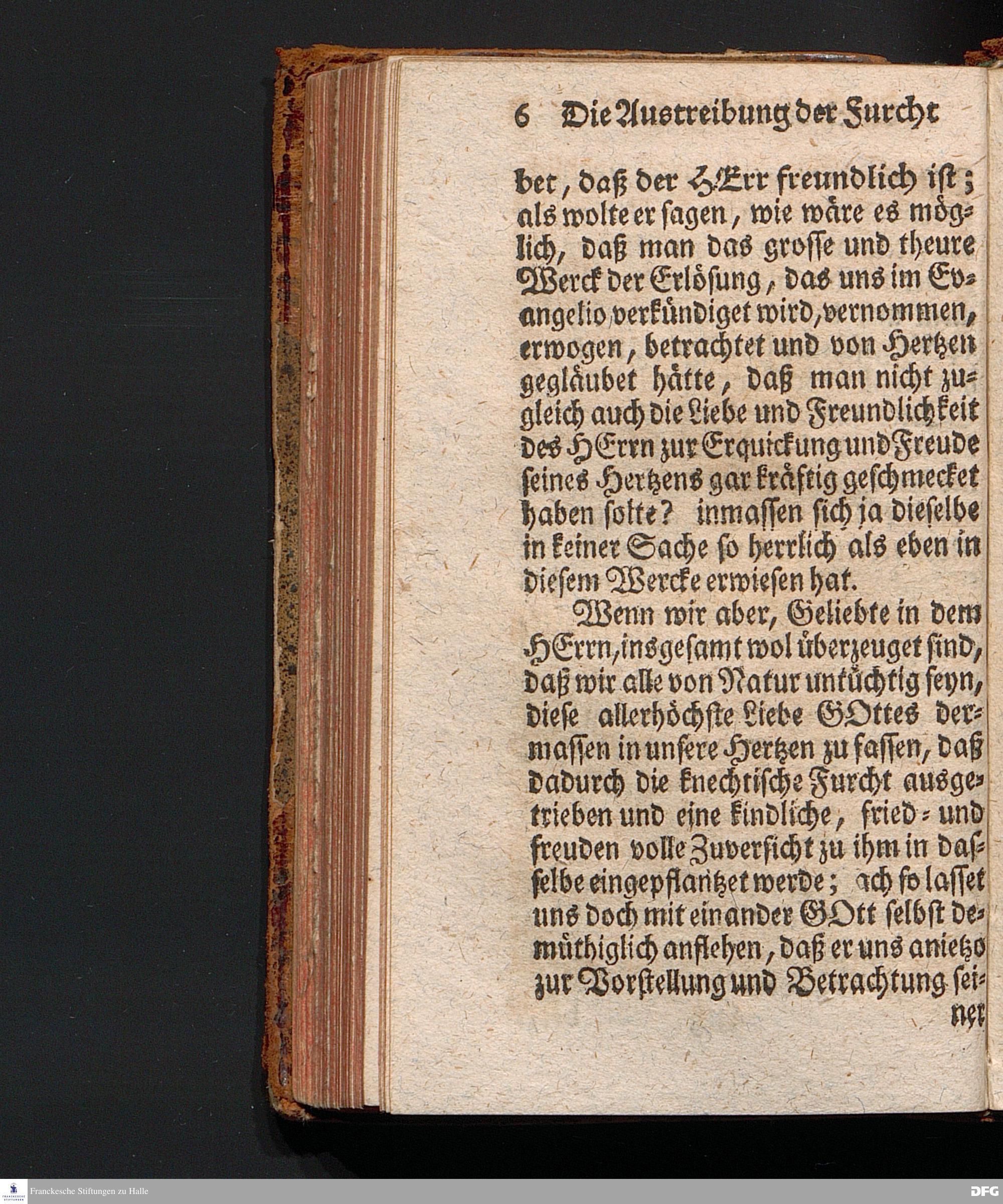 Die Austreibung Der Furcht durch die völlige Liebe, Am I.Sonntag nach Trinitatis 1719. In einer Uber die ordentliche Epistolische Lection aus I Joh.IV, 16-21. In der Universitäts=Kirche zu Leipzig auf geschehenen Antrag gehaltenen Predigt vorgestellet, und auf Begehren zum Druck gegeben, von August Hermann Francken, S.Theol.Prof.& Past.zu St.Ulrich, und des Gymnasii Scholarcha. Dritte Auflage. HALLE, in Verlegung des Wäysenhauses, 1743.