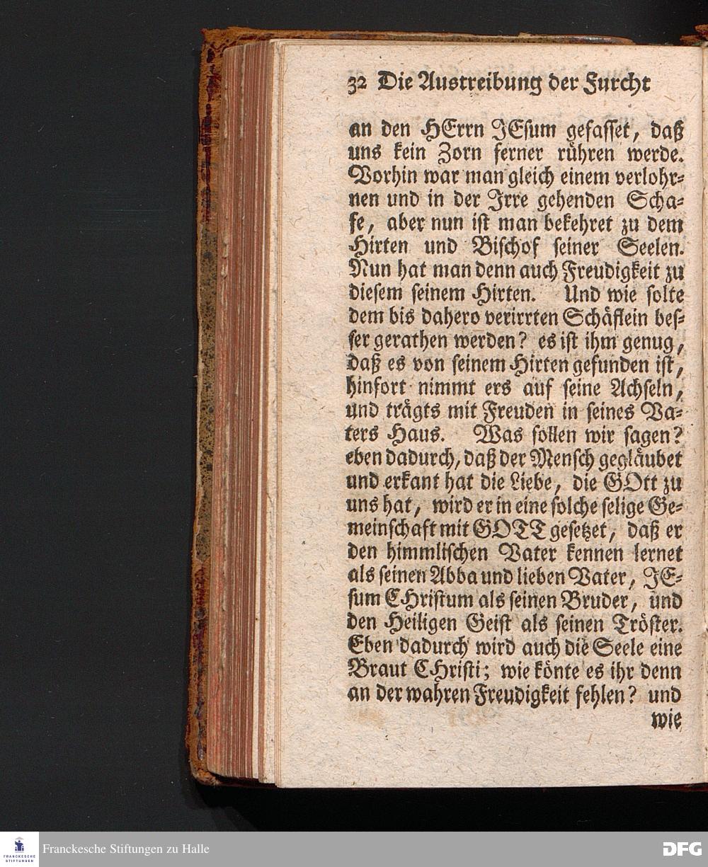 Die Austreibung Der Furcht durch die völlige Liebe, Am I.Sonntag nach Trinitatis 1719. In einer Uber die ordentliche Epistolische Lection aus I Joh.IV, 16-21. In der Universitäts=Kirche zu Leipzig auf geschehenen Antrag gehaltenen Predigt vorgestellet, und auf Begehren zum Druck gegeben, von August Hermann Francken, S.Theol.Prof.& Past.zu St.Ulrich, und des Gymnasii Scholarcha. Dritte Auflage. HALLE, in Verlegung des Wäysenhauses, 1743.